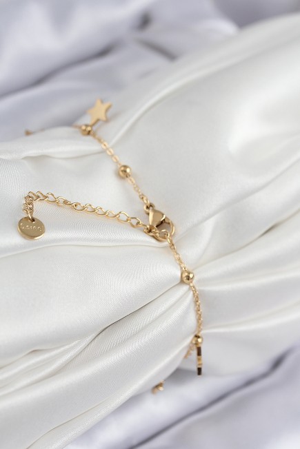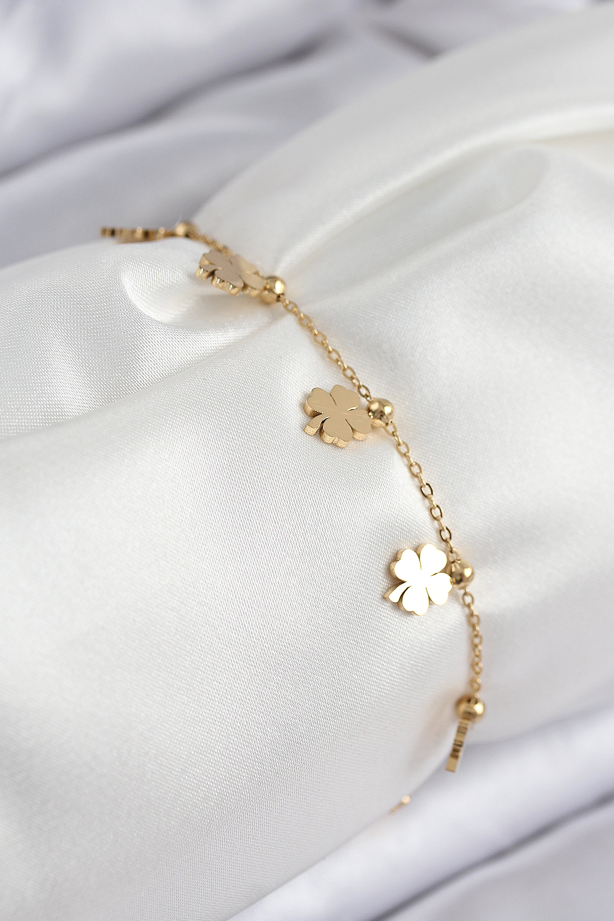 316L Çelik Sıralı Yonca Model Gold Renk Kadın Bileklik - 265452