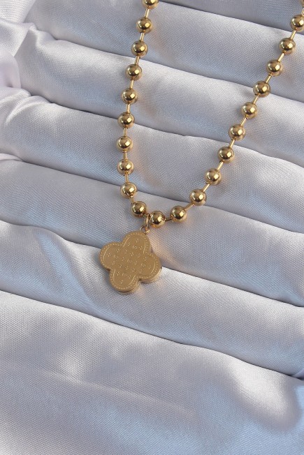 316L Çelik Top Zincirli Gold Renk İşlemeli Yonca Model Kolye - 256694