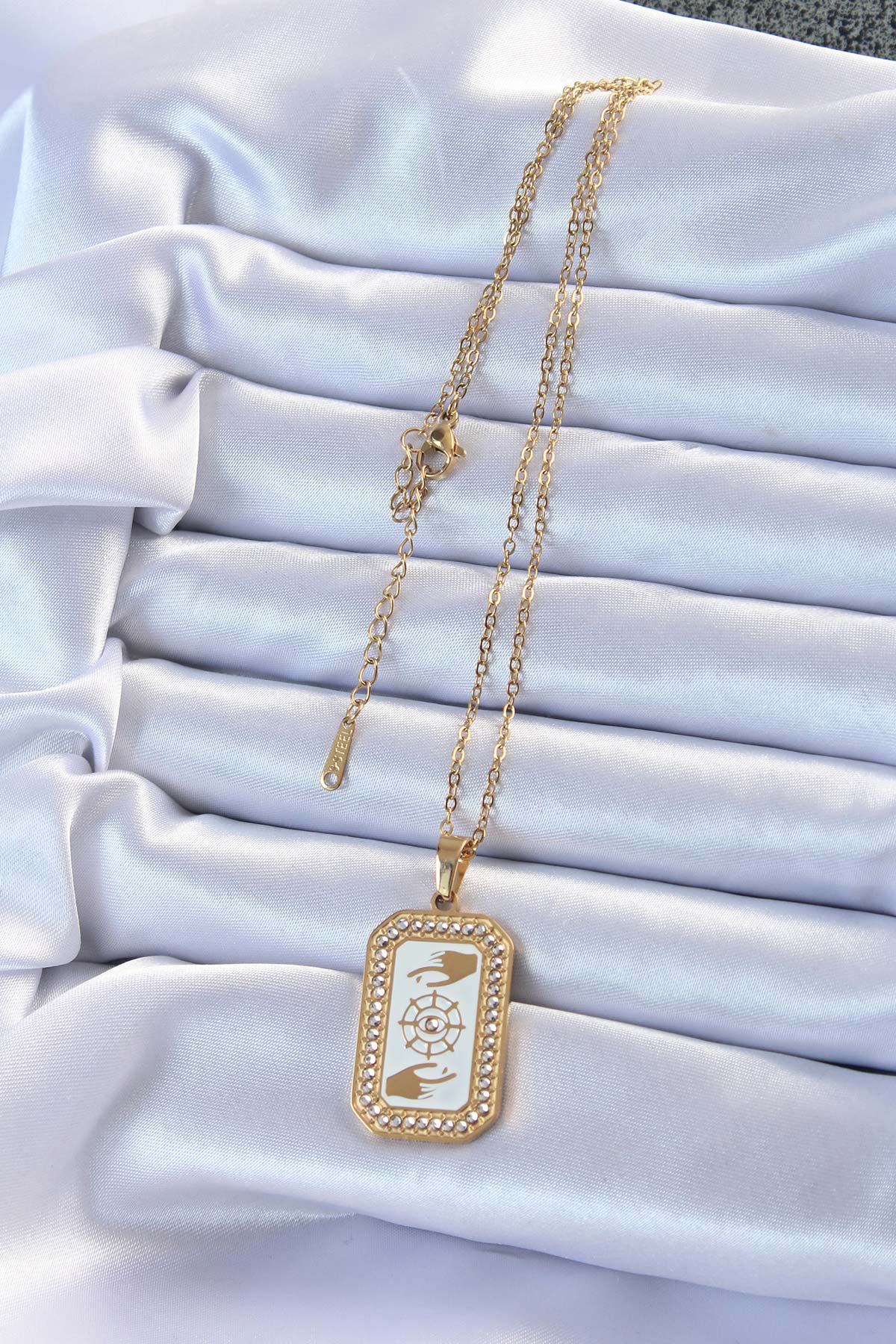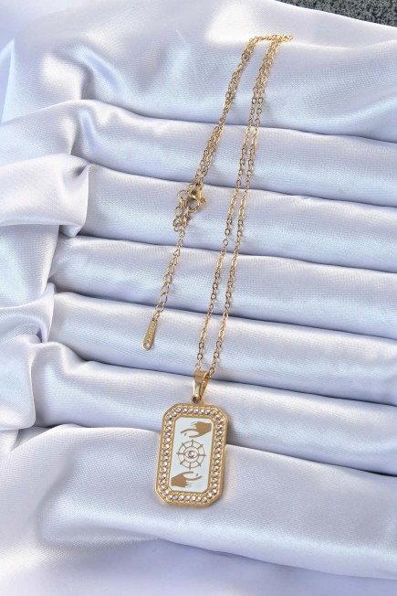 316L Çelik Zincir Altın Renk Mineli Zirkon Taşlı Göz Figür Tarot Kolye - 257353