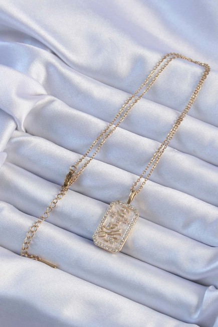 316L Çelik Zincir Altın Renk Zirkon Taşlı Çerçeveli Tarot Kolye - 257425