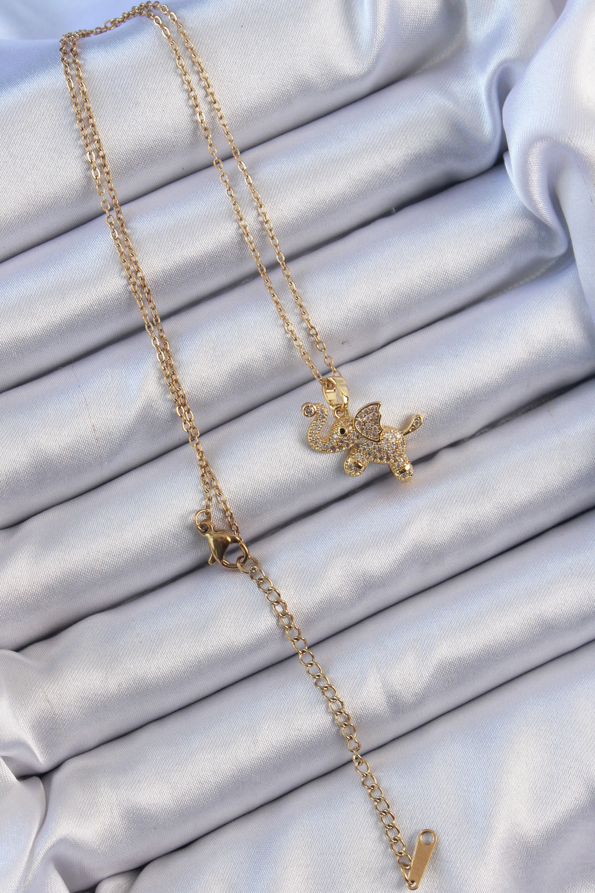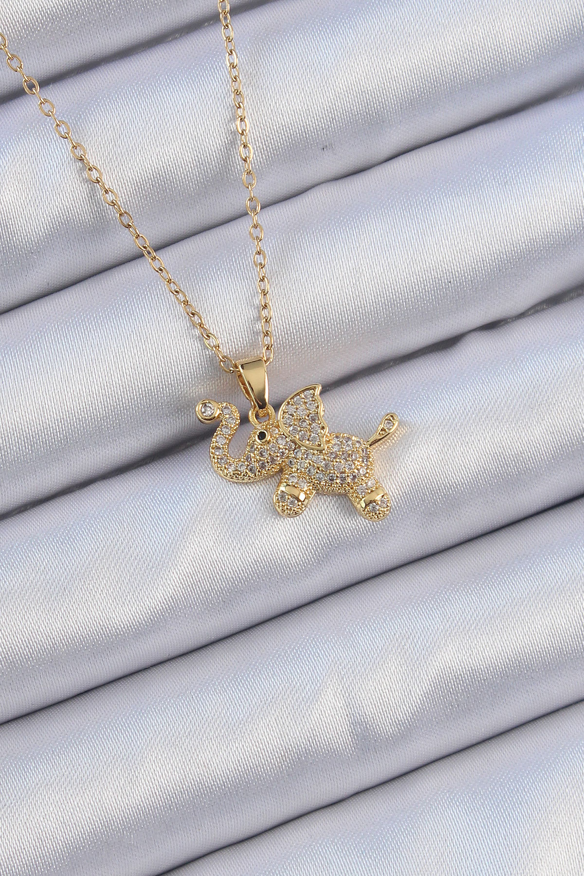 316L Çelik Zincir Altın Renk Zirkon Taşlı Fil Kolye - 256877