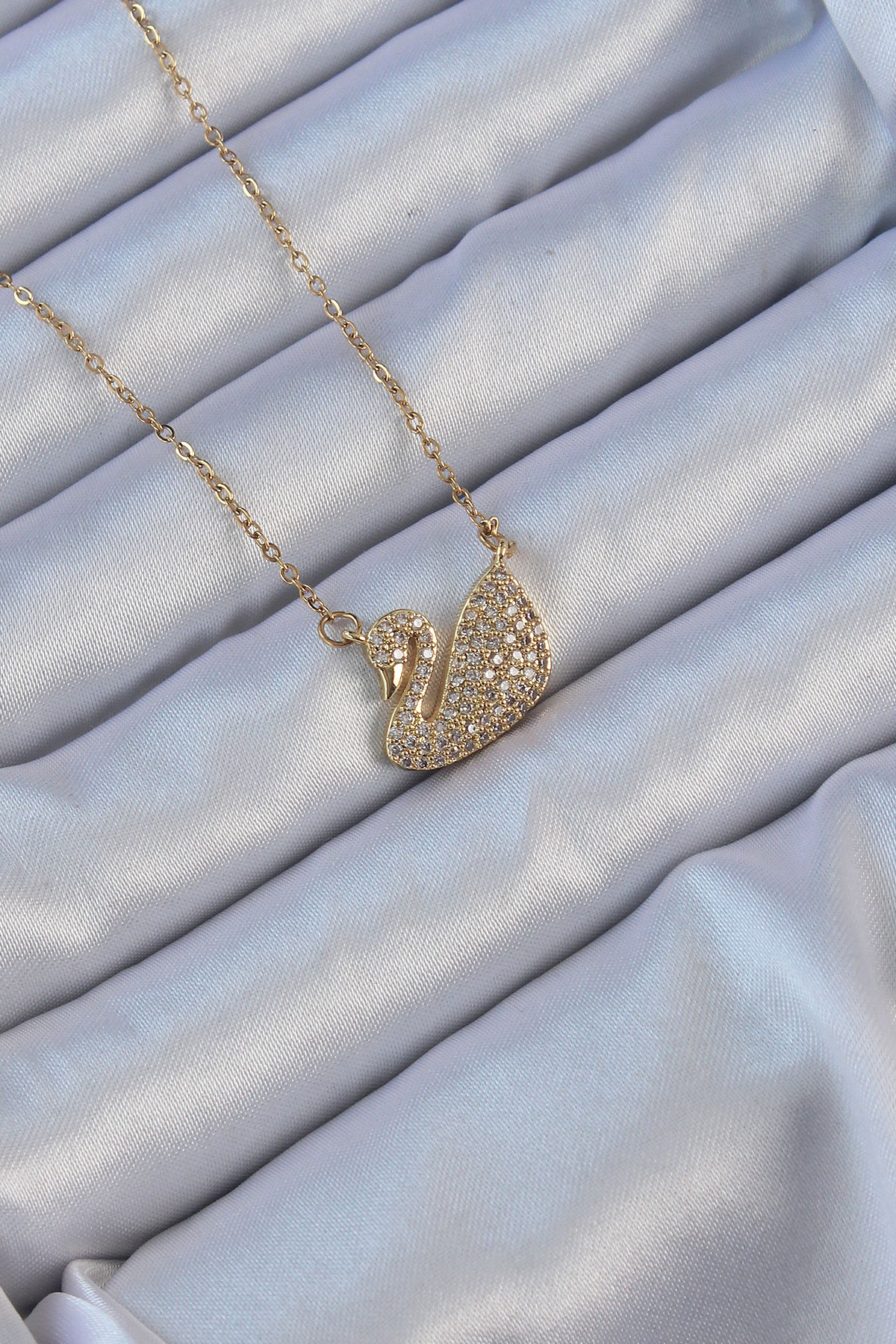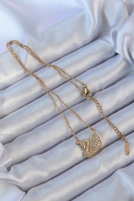 316L Çelik Zincir Altın Renk Zirkon Taşlı Kuğu Kolye - 256935