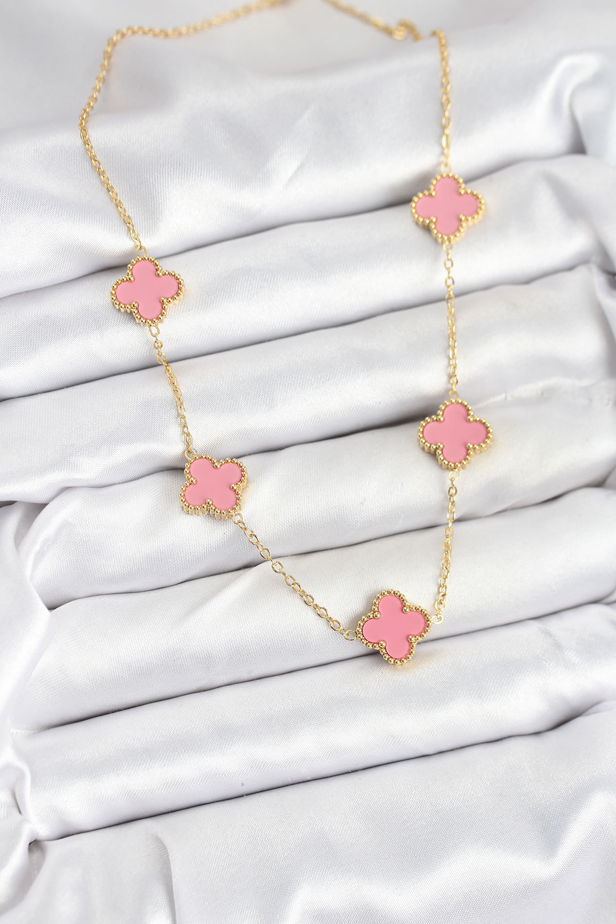 316L Çelik Zincir Gold Pembe Renk Yonca Kadın Kolye - 265690