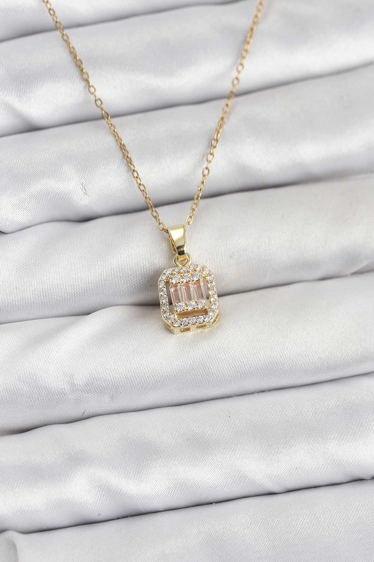 316L Çelik Zincir Gold Renk Baget Model Kadın Kolye - 266657