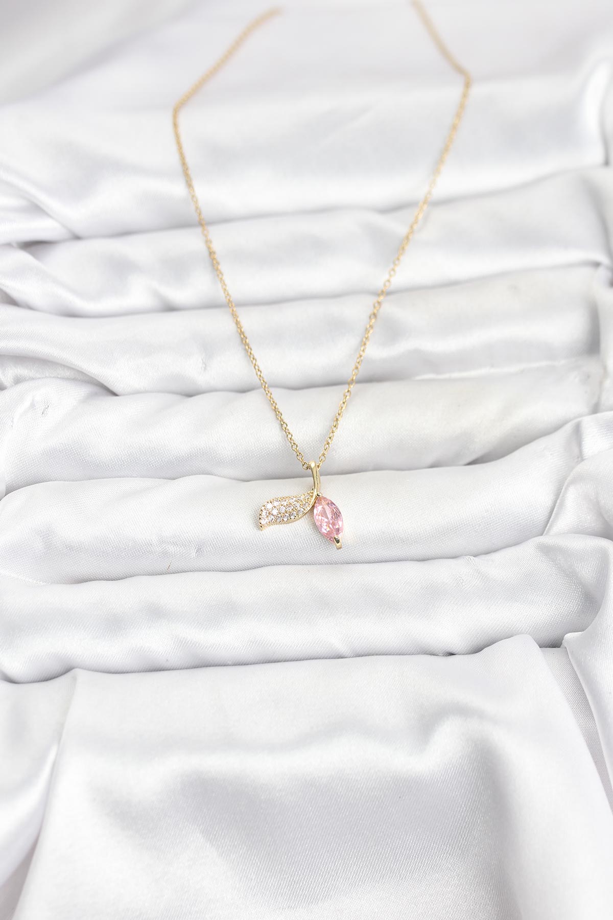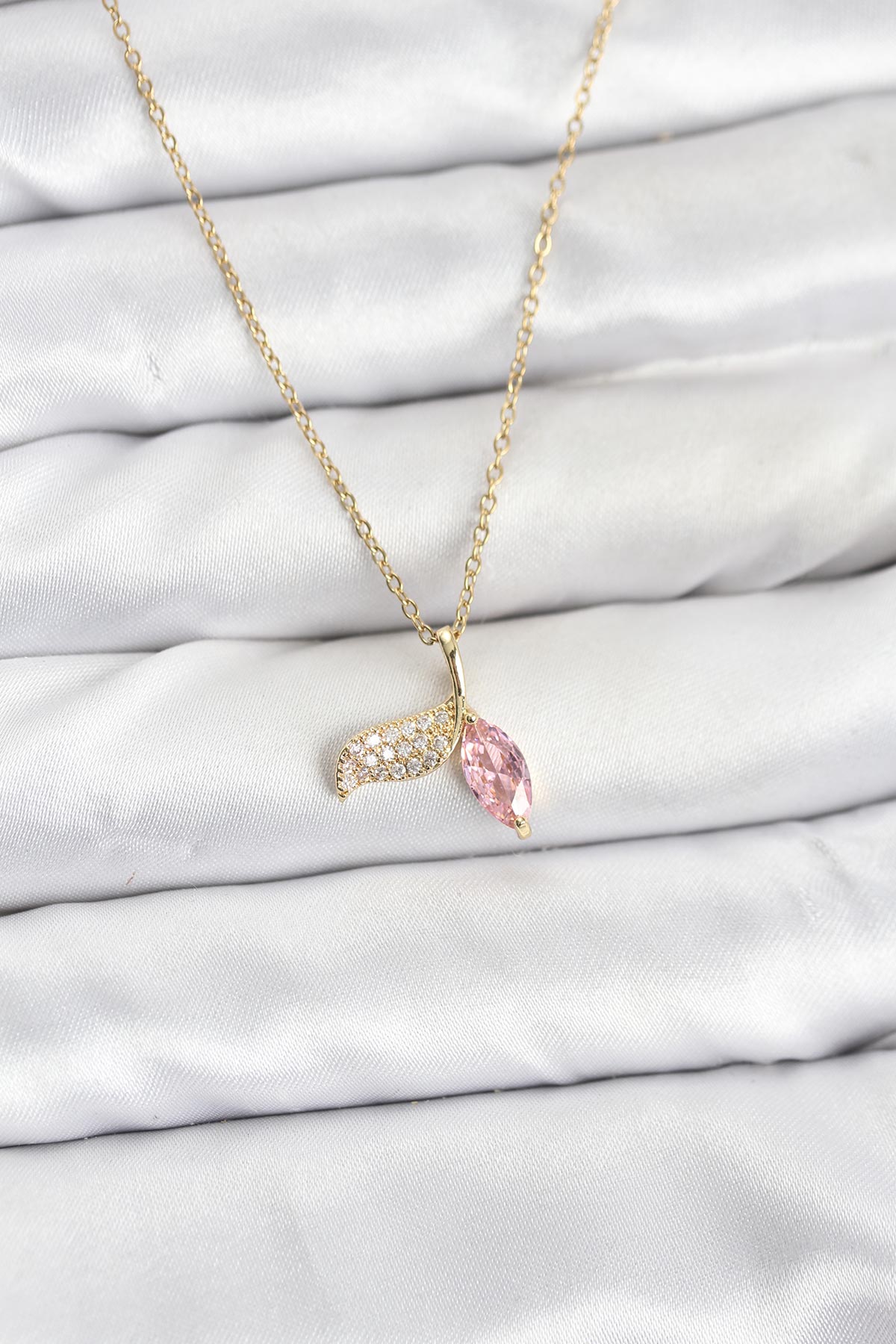 316L Çelik Zincir Gold Renk Balık Kuyruğu Model Zirkon Taşlı Kadın Kolye - 267120