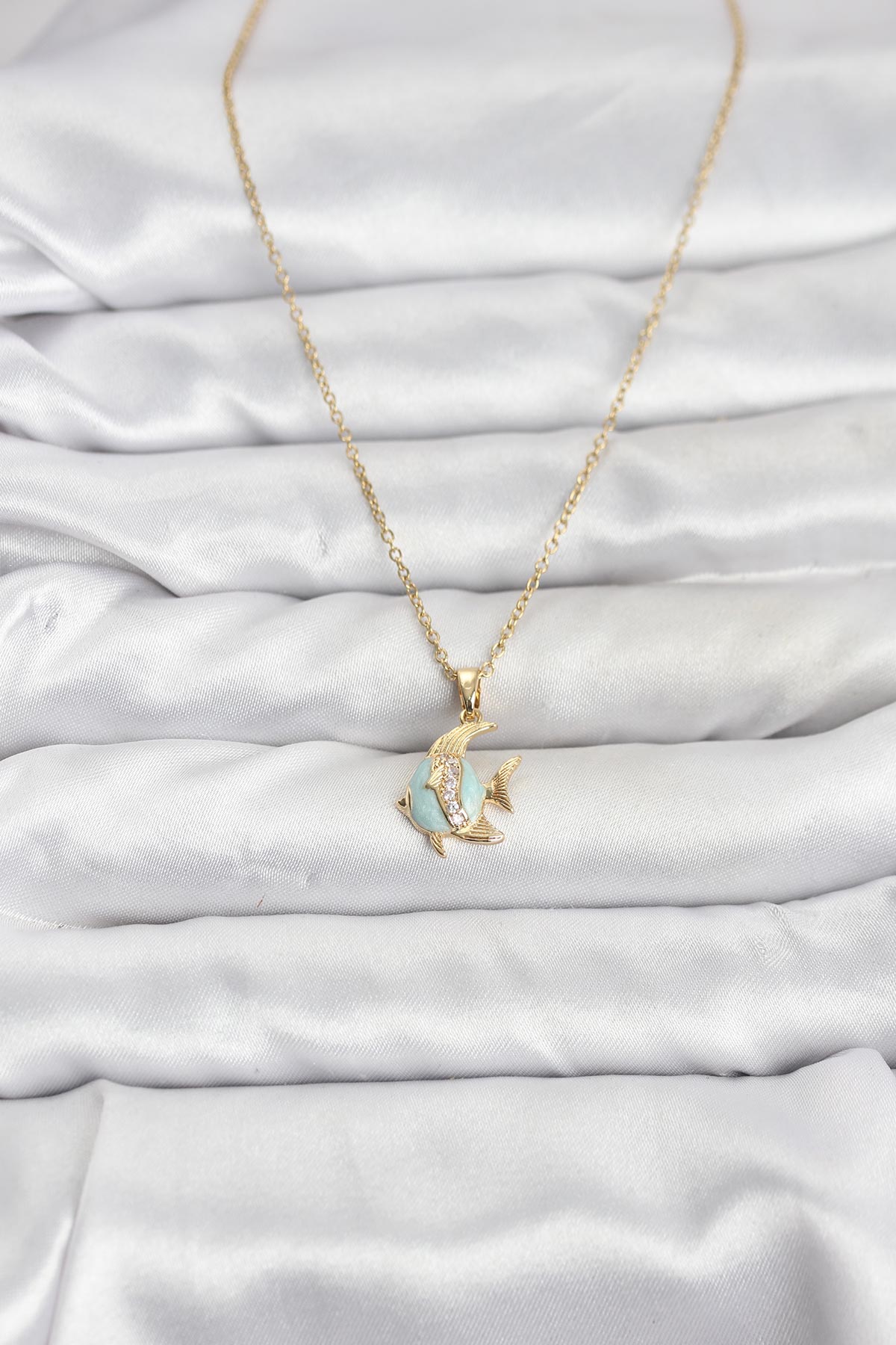 316L Çelik Zincir Gold Renk Balık Model Zirkon Taşlı Kadın Kolye - 267109