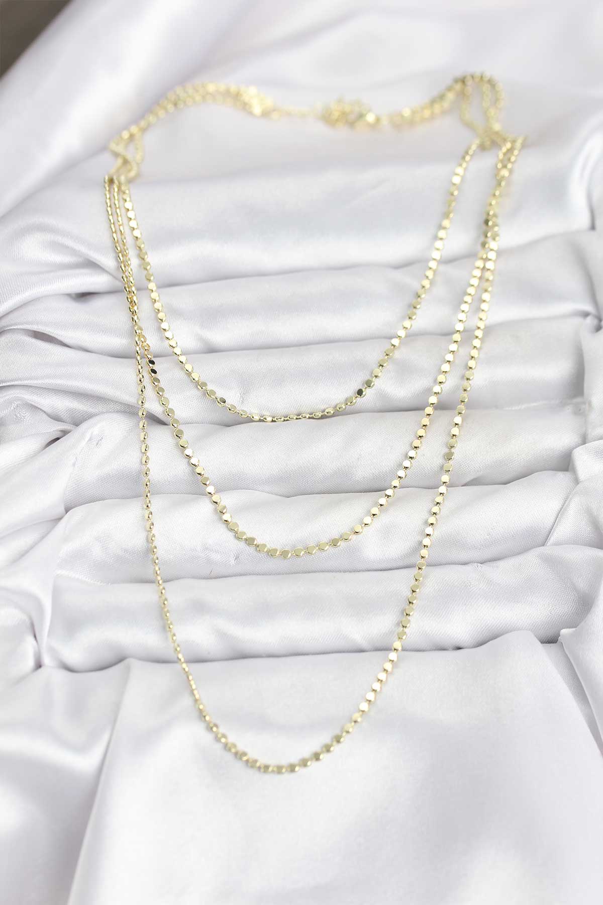 316L Çelik Zincir Gold Renk Ezme Zincir Model 3'lü Kadın Kolye - 266683