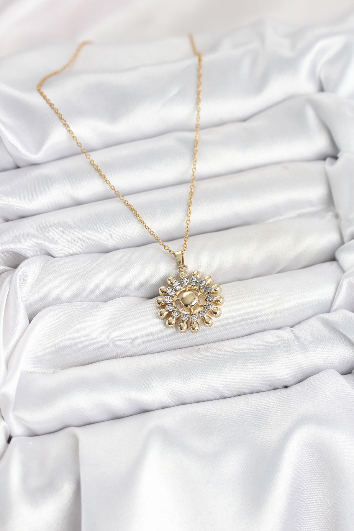 316L Çelik Zincir Gold Renk Güneş Model Kadın Kolye - 266181