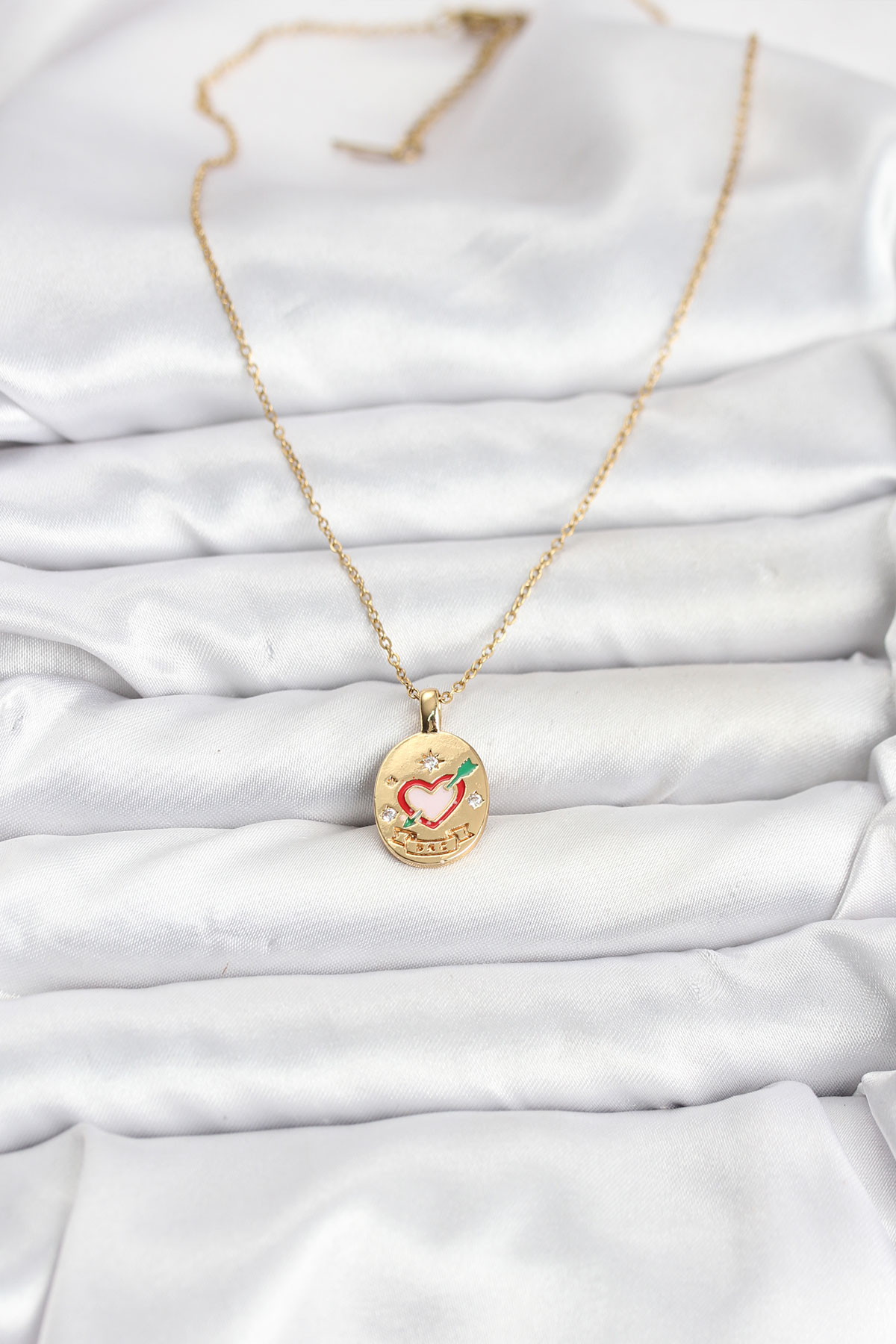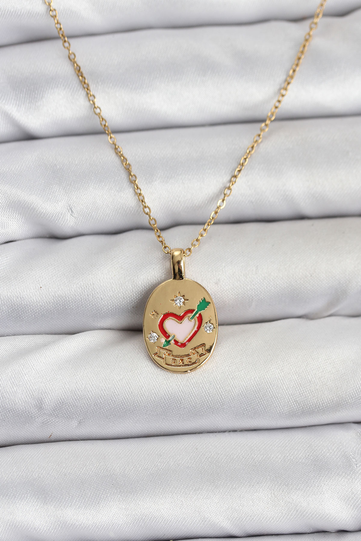 316L Çelik Zincir Gold Renk Kalp Figürlü Kadın Kolye - 266616