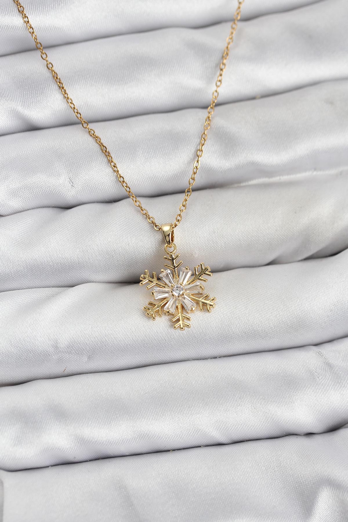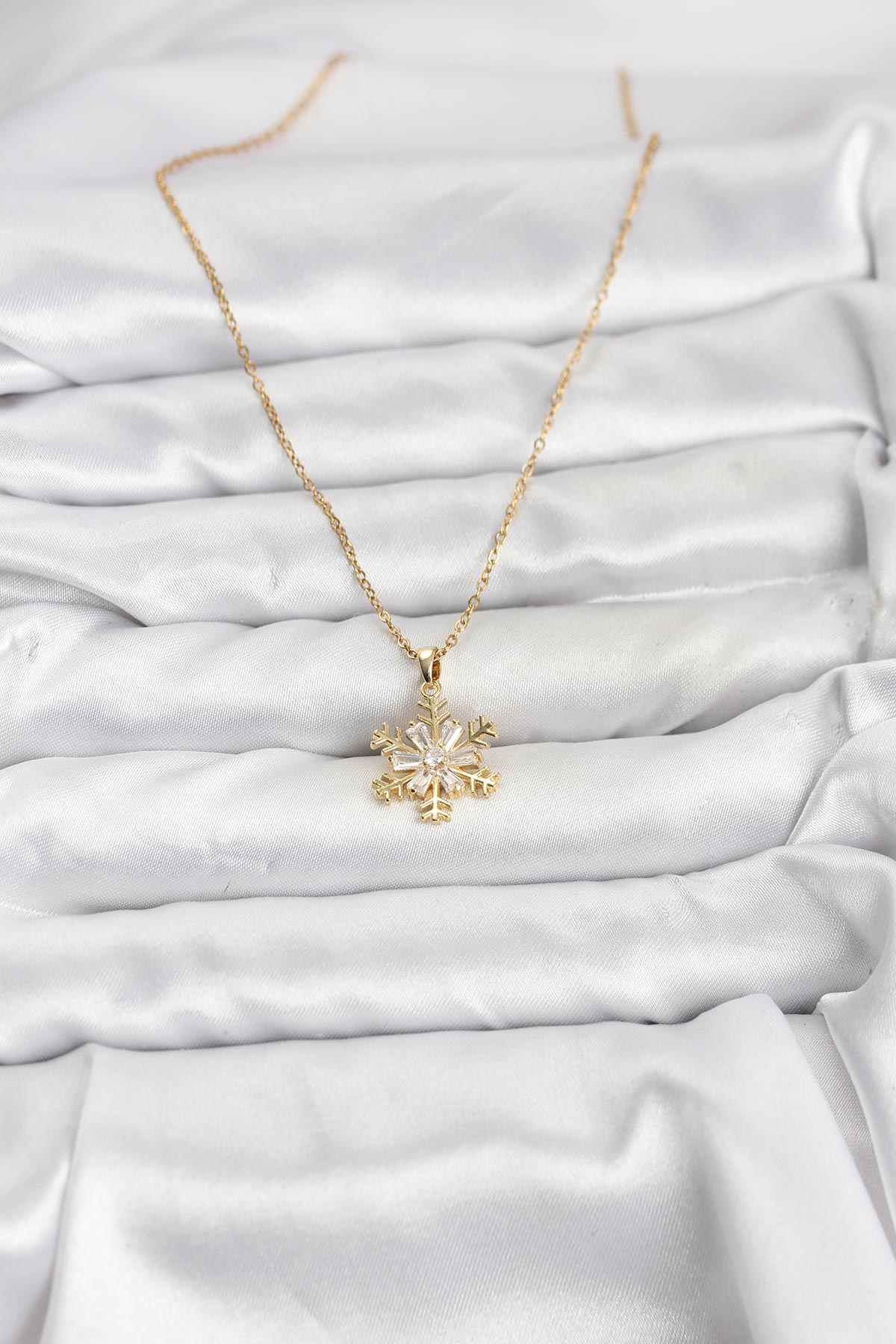 316L Çelik Zincir Gold Renk Kar Tanesi Model Zirkon Taşlı Kadın Kolye - 267094