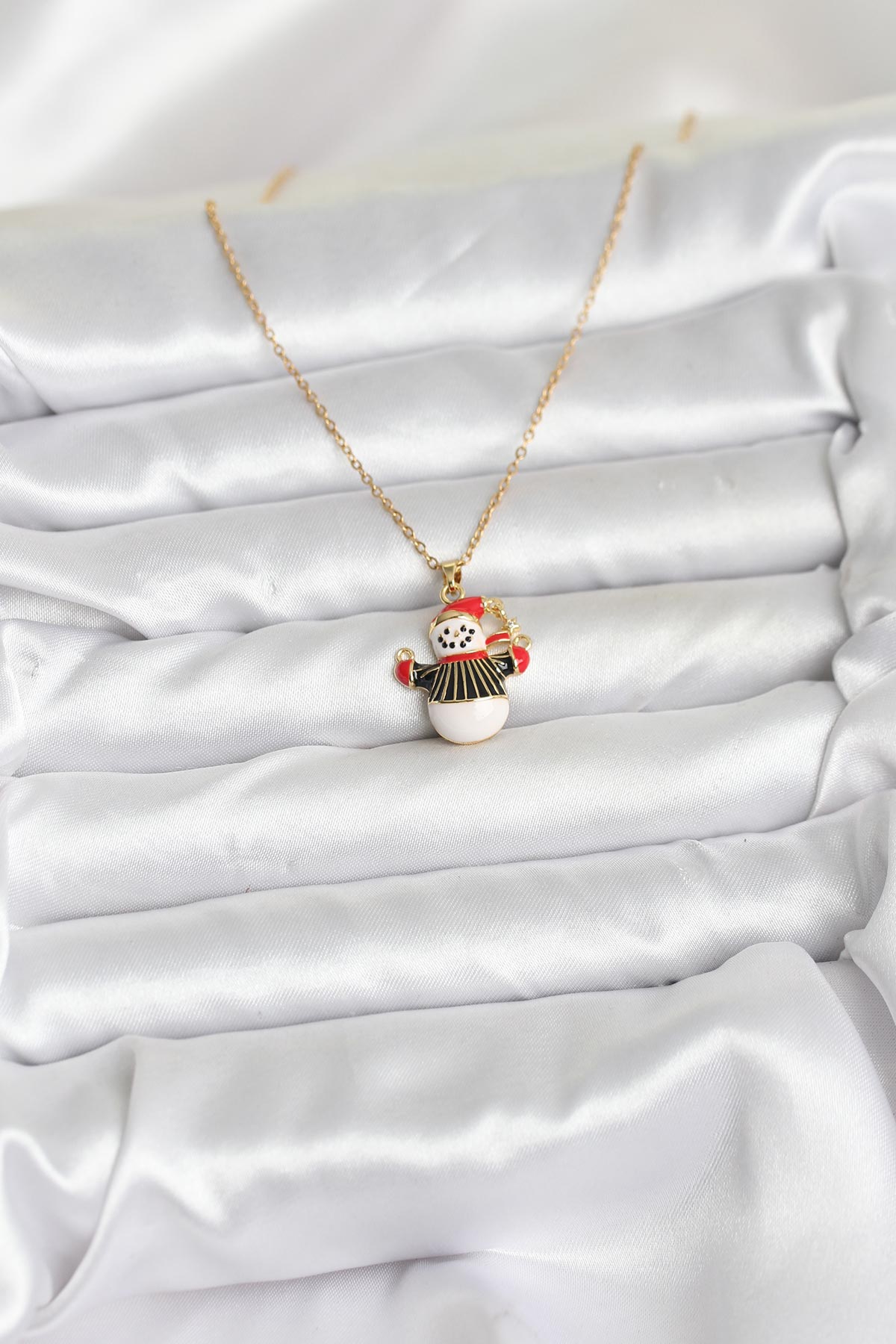 316L Çelik Zincir Gold Renk Kardan Adam Figürlü Yılbaşı Temalı Kadın Kolye - 266358