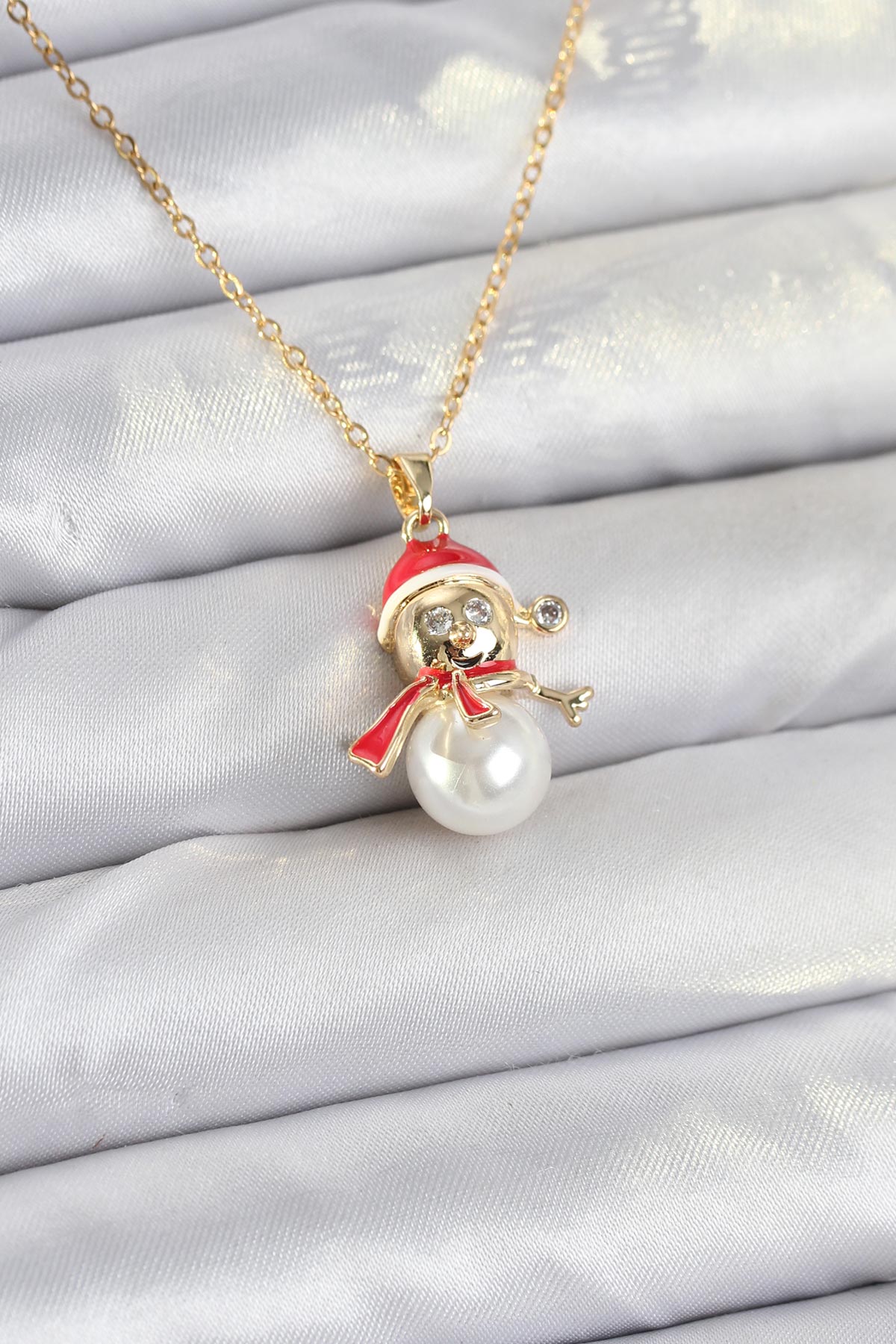 316L Çelik Zincir Gold Renk Kardan Adam Model Yılbaşı Temalı Kadın Kolye - 266348