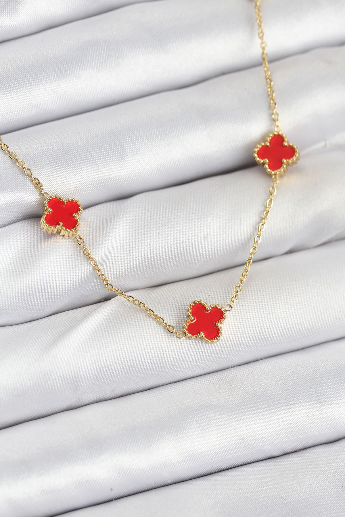 316L Çelik Zincir Gold Renk Kırmızı Baby Boy Yonca Kadın Kolye - 265687