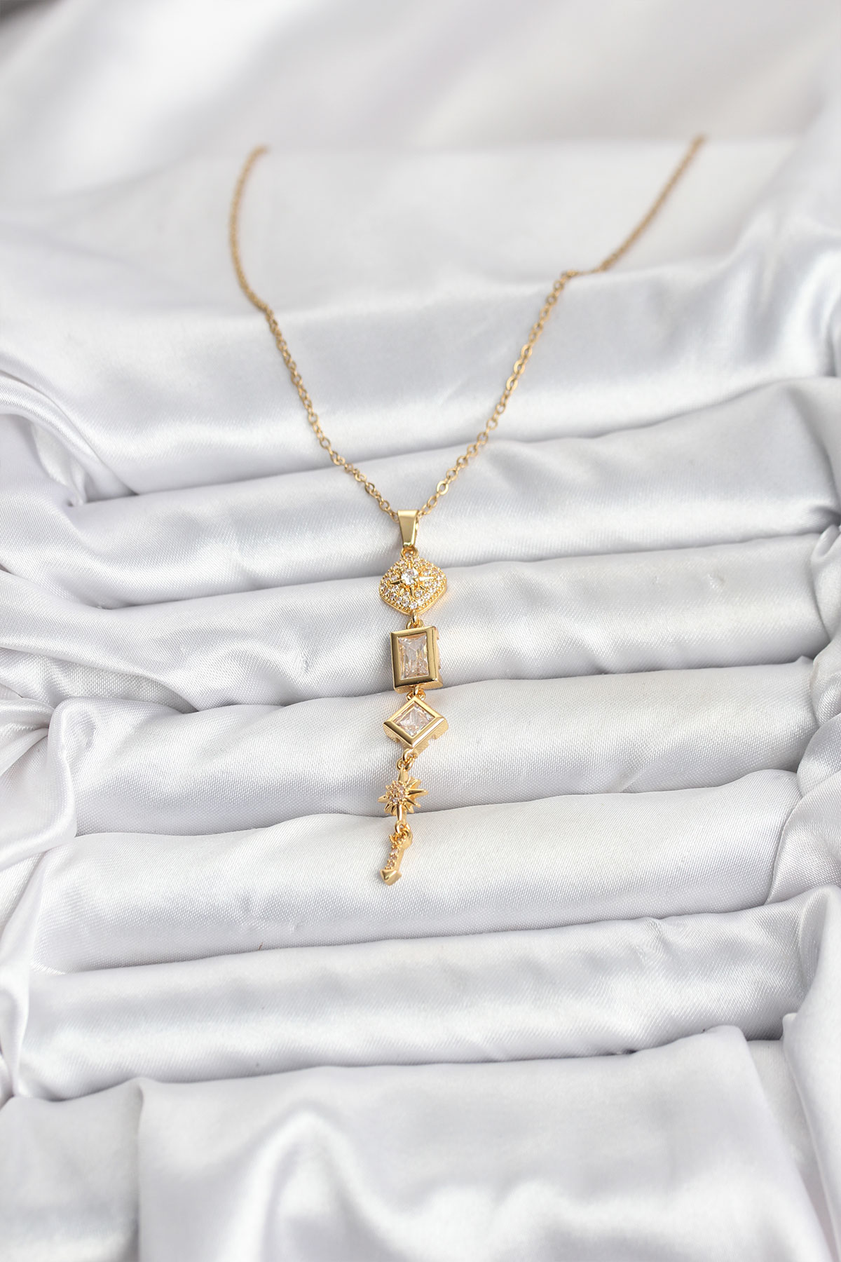 316L Çelik Zincir Gold Renk Kutup Yıldızı Enerji Model Kadın Y Kolye - 266297