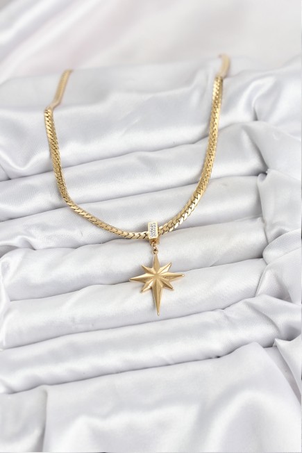 316L Çelik Zincir Gold Renk Kutup Yıldızı Model Kadın Kolye - 266203