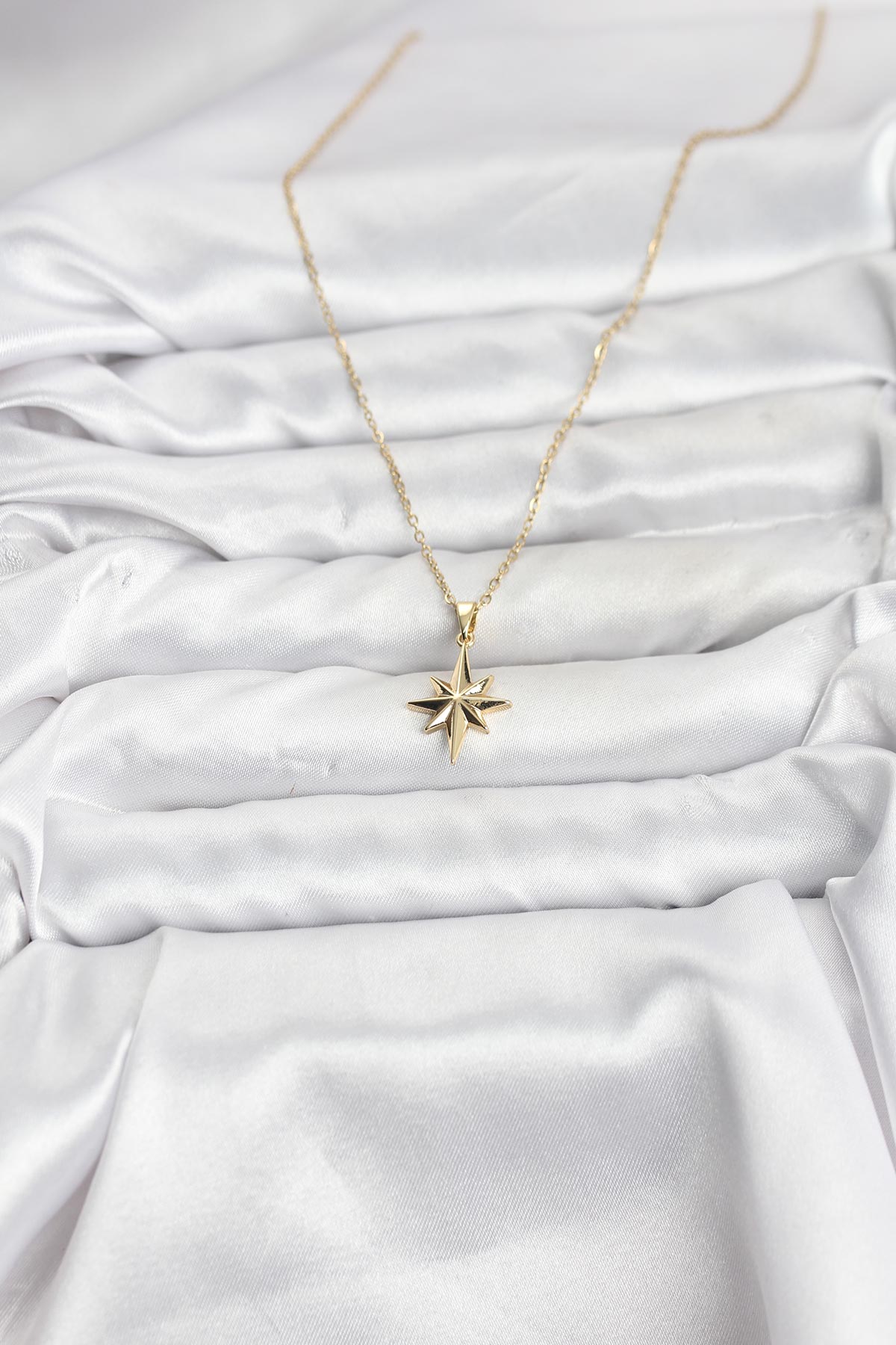 316L Çelik Zincir Gold Renk Kutup Yıldızı Model Kadın Kolye - 267160
