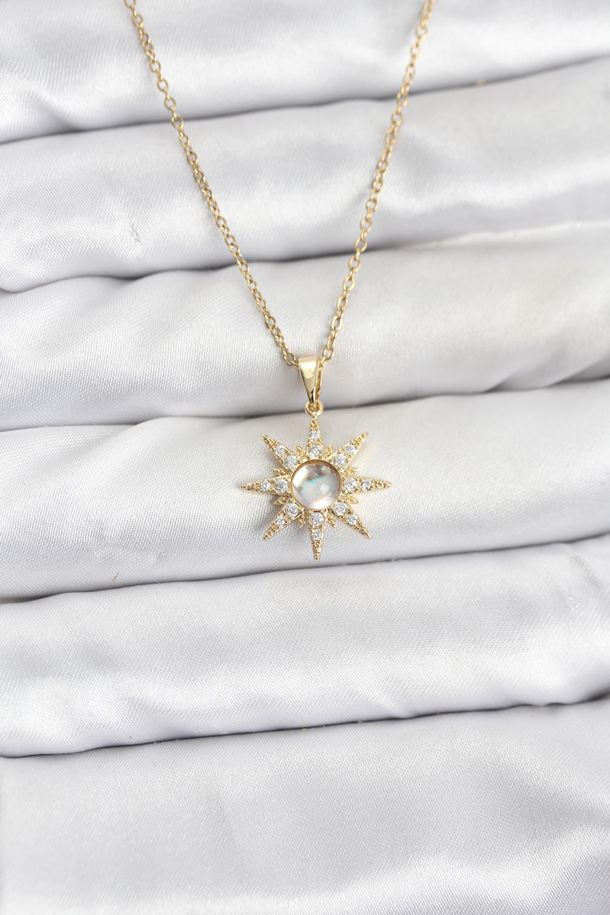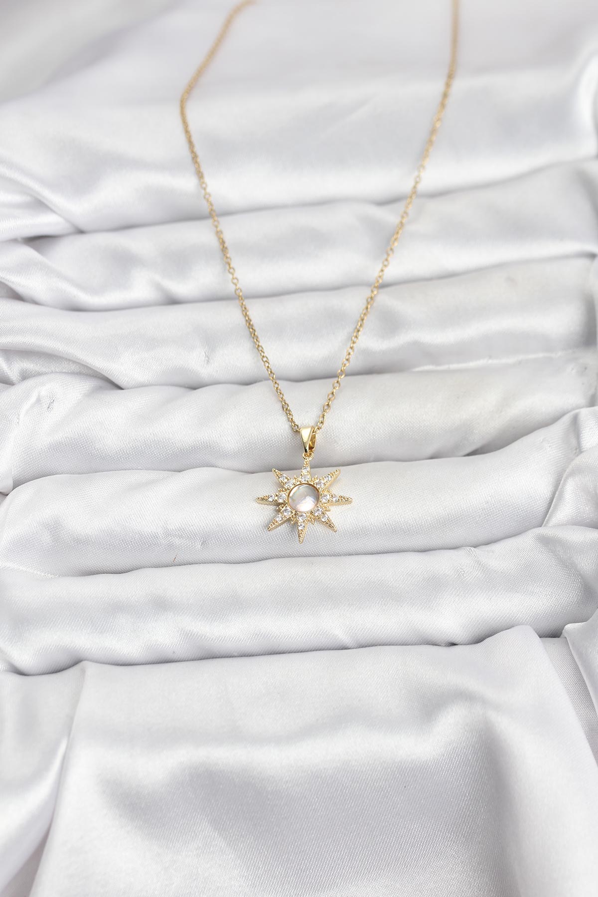 316L Çelik Zincir Gold Renk Kutup Yıldızı Model Zirkon Taşlı Kadın Kolye - 267124
