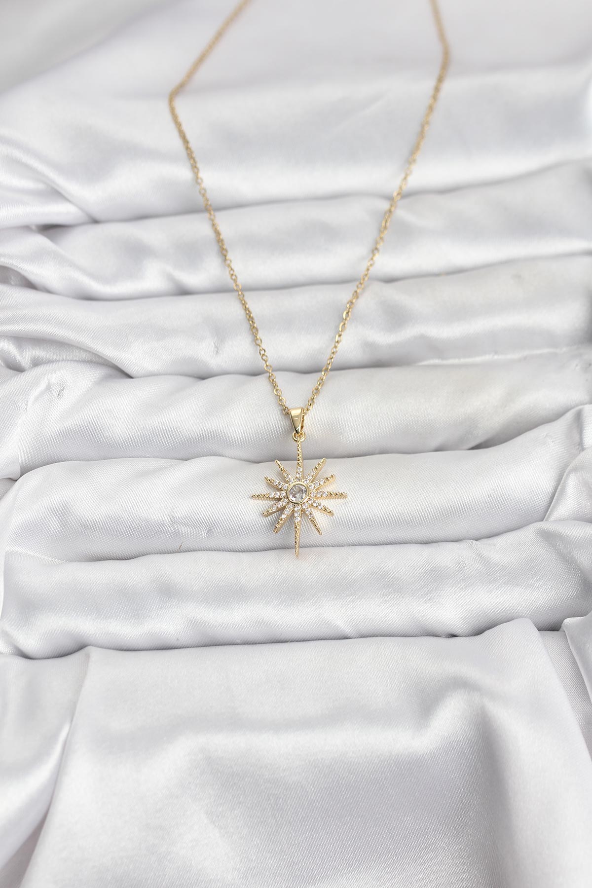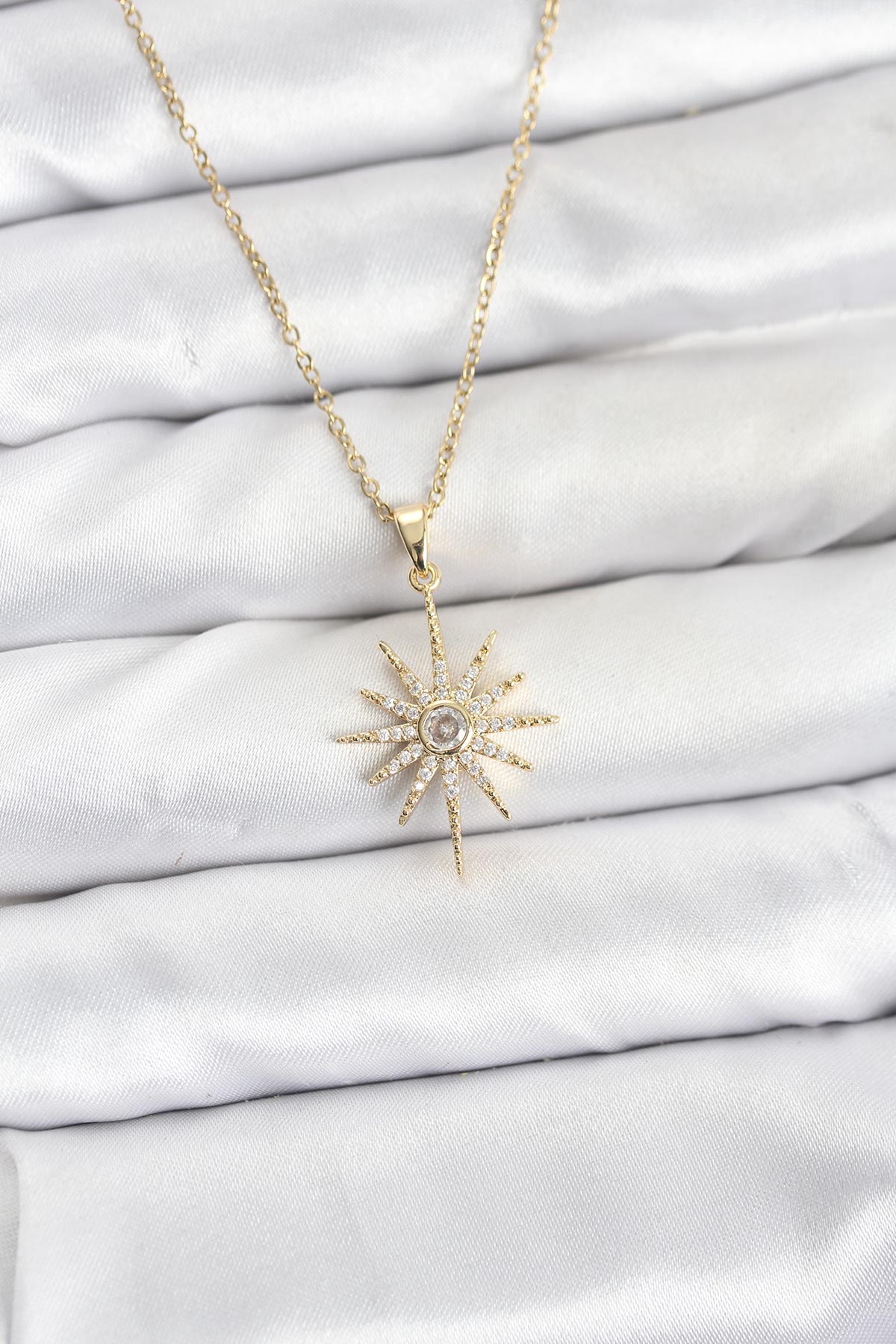 316L Çelik Zincir Gold Renk Kutup Yıldızı Model Zirkon Taşlı Kadın Kolye - 267140