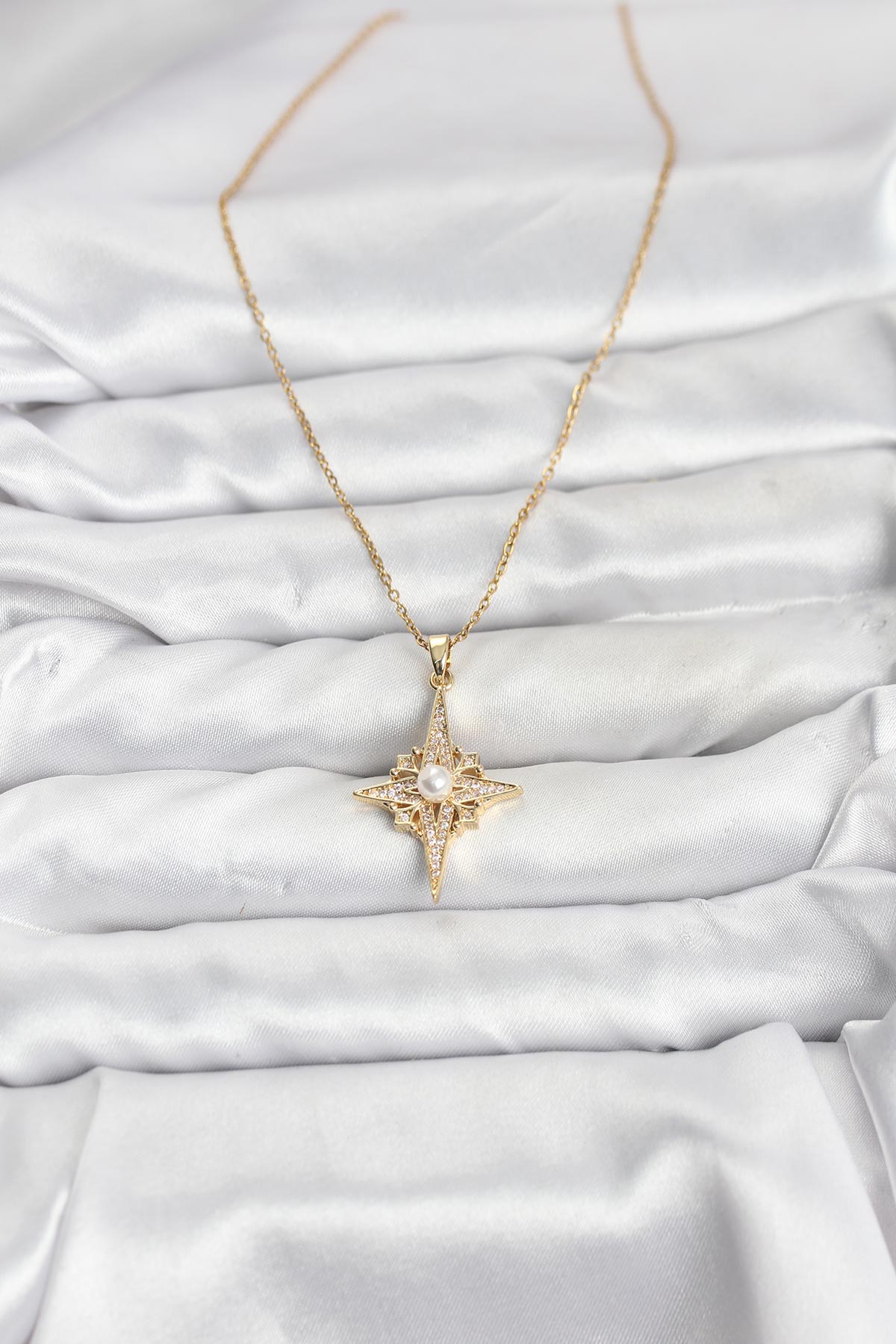 316L Çelik Zincir Gold Renk Kutup Yıldızı Model Zirkon Taşlı Kadın Kolye - 267156