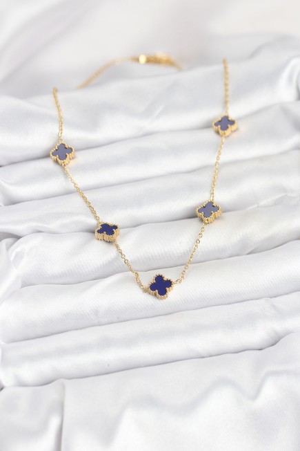 316L Çelik Zincir Gold Renk Lacivert Baby Boy Yonca Kadın Kolye - 265680