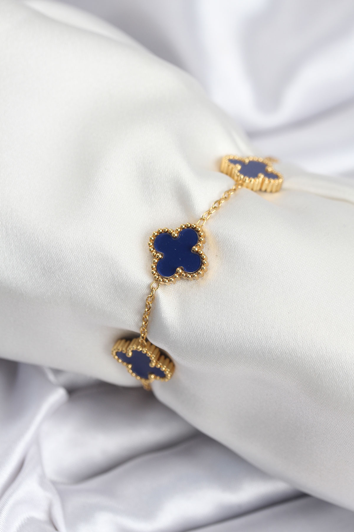 316L Çelik Zincir Gold Renk Lacivert Yonca Kadın Bileklik - 265742