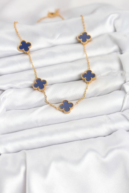 316L Çelik Zincir Gold Renk Lacivert Yonca Kadın Kolye - 265674