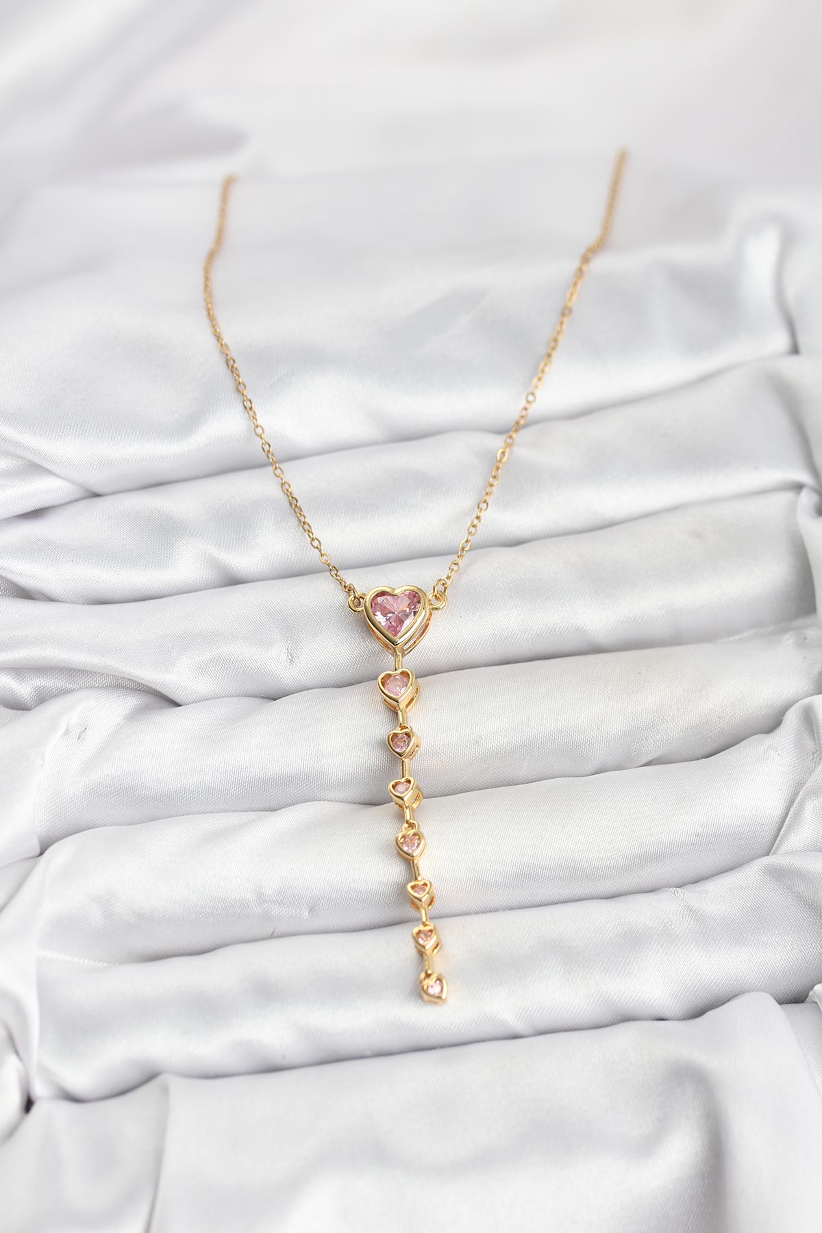316L Çelik Zincir Gold Renk Pembe Kalp Kadın Kolye - 267078