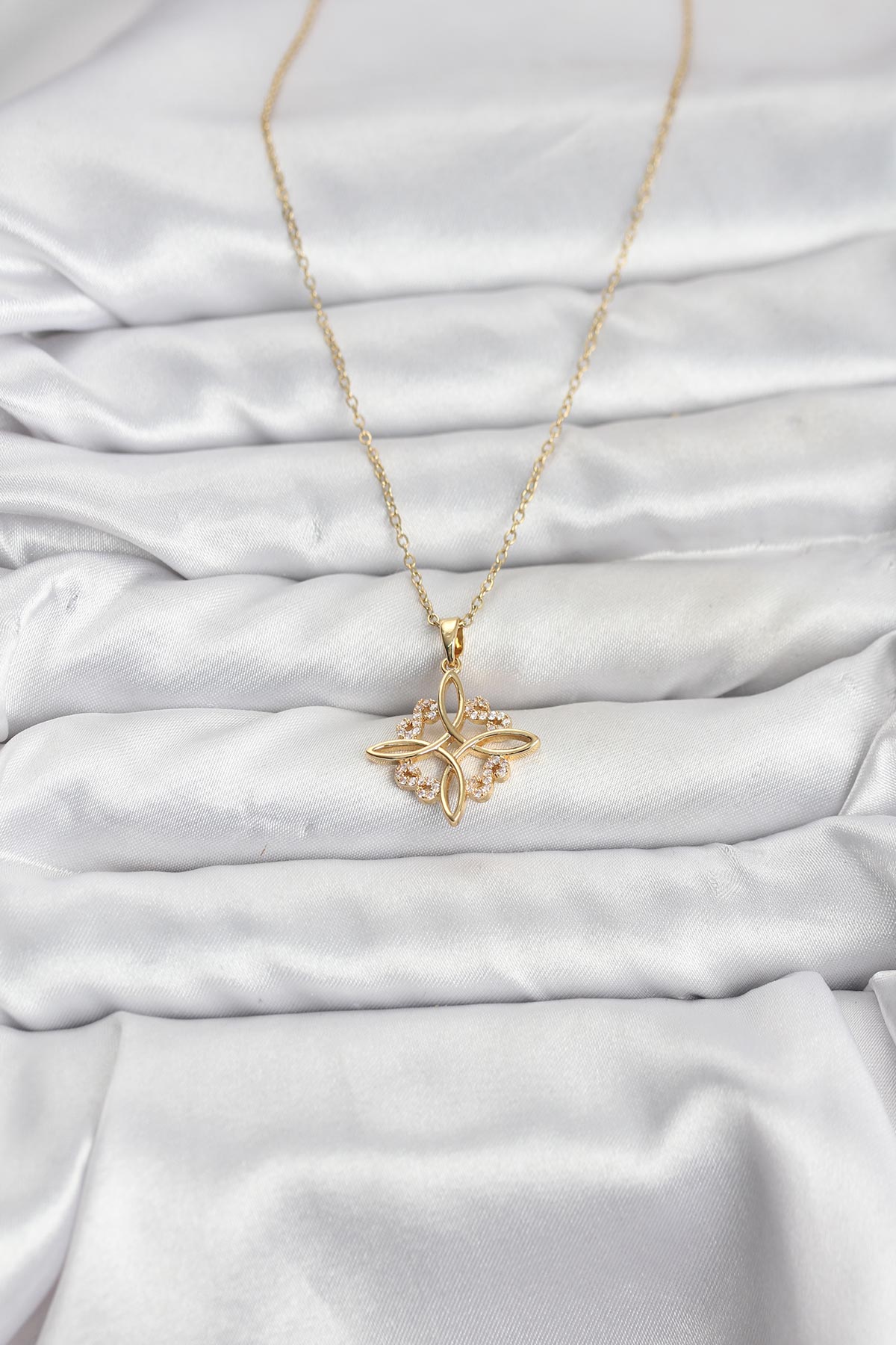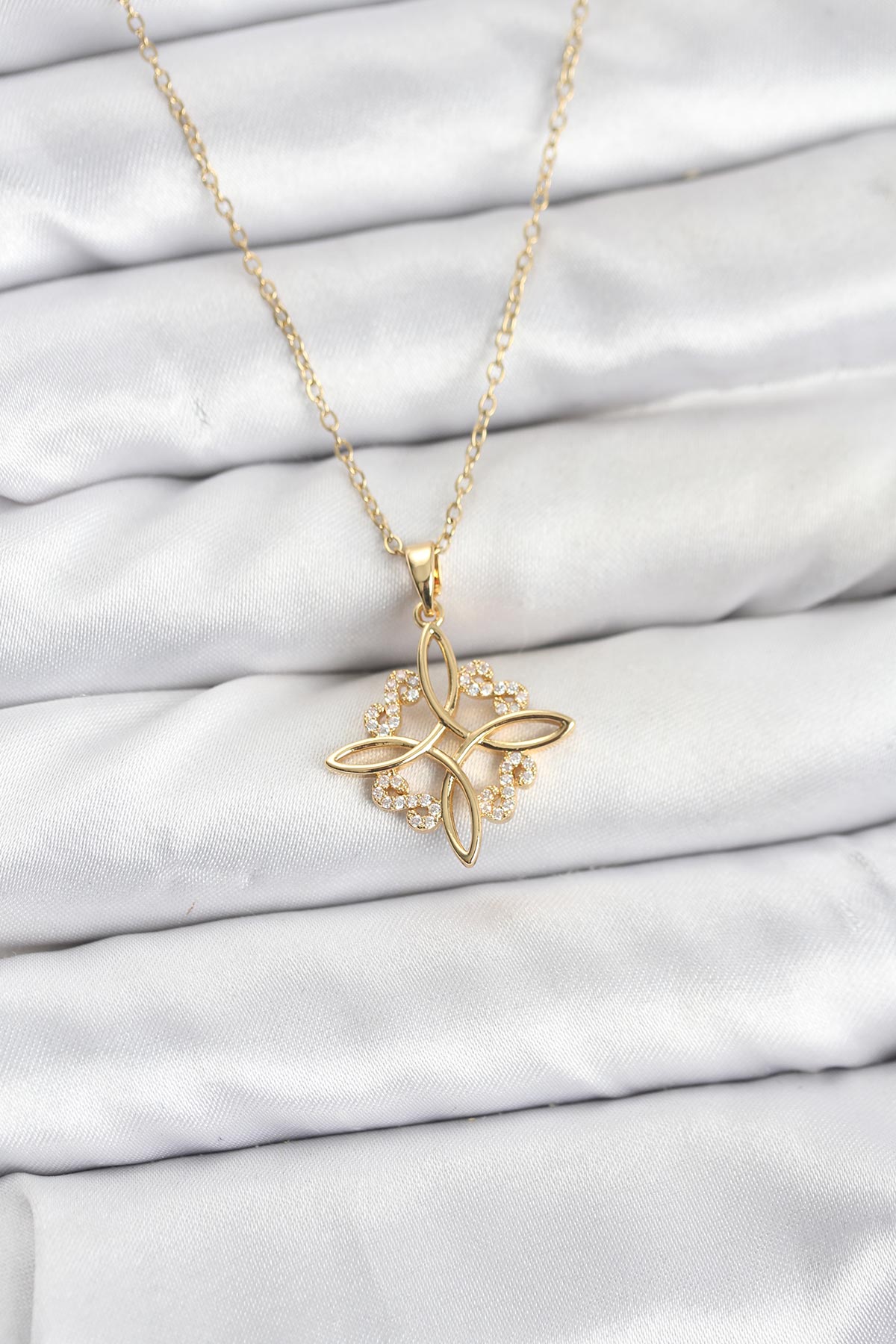 316L Çelik Zincir Gold Renk Sonsuzluk Model Zirkon Taşlı Kadın Kolye - 267136