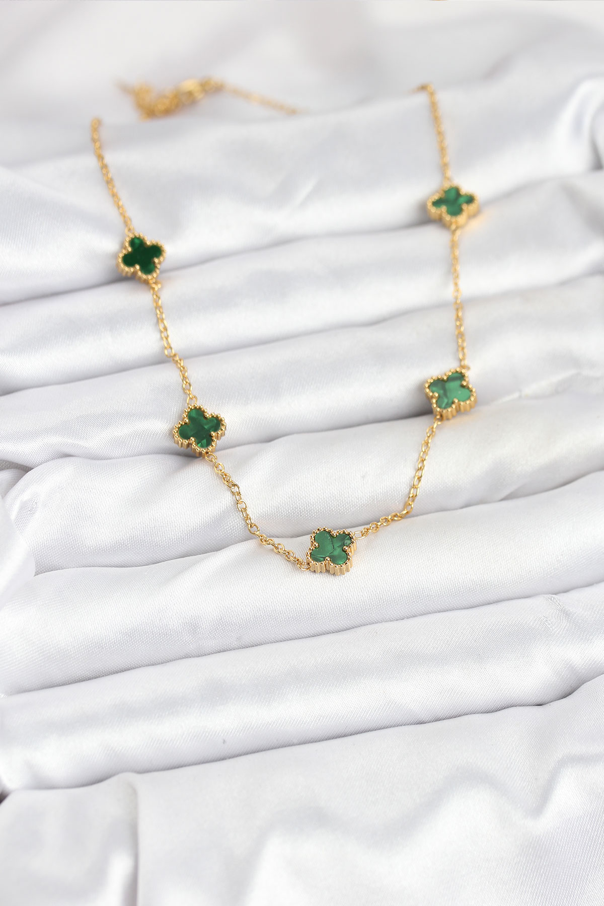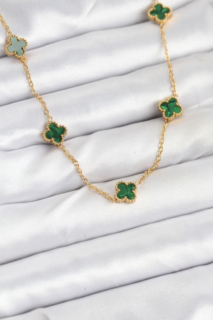 316L Çelik Zincir Gold Renk Yeşil Baby Boy Yonca Kadın Kolye - 265677
