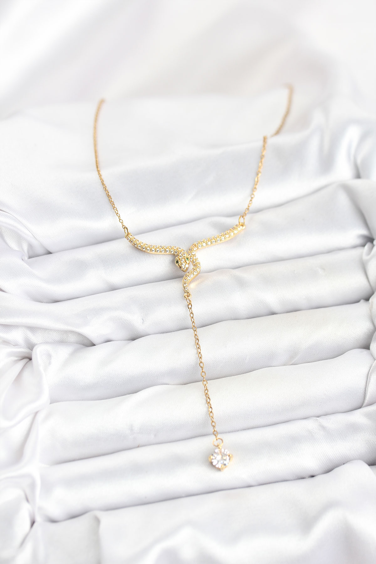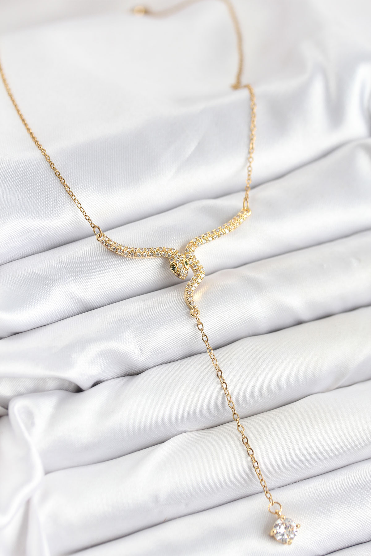 316L Çelik Zincir Gold Renk Yılan Model Y Kolye - 266288