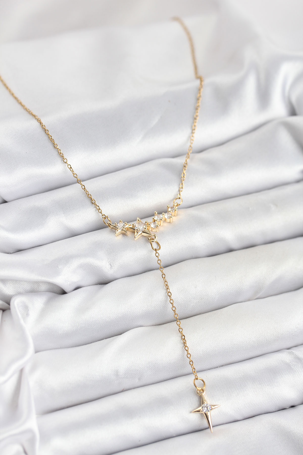 316L Çelik Zincir Gold Renk Yıldız Model Y Kadın Kolye - 266292