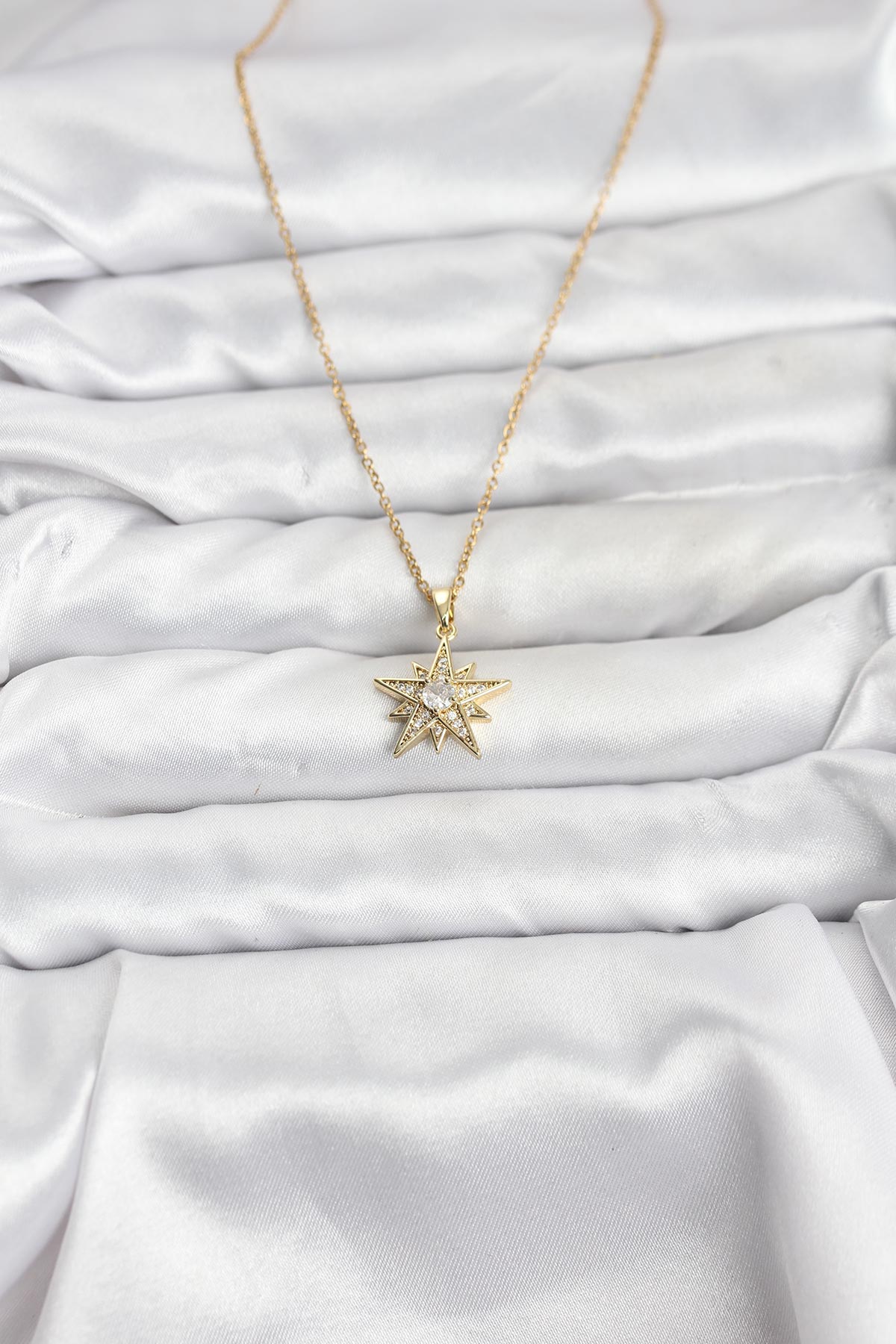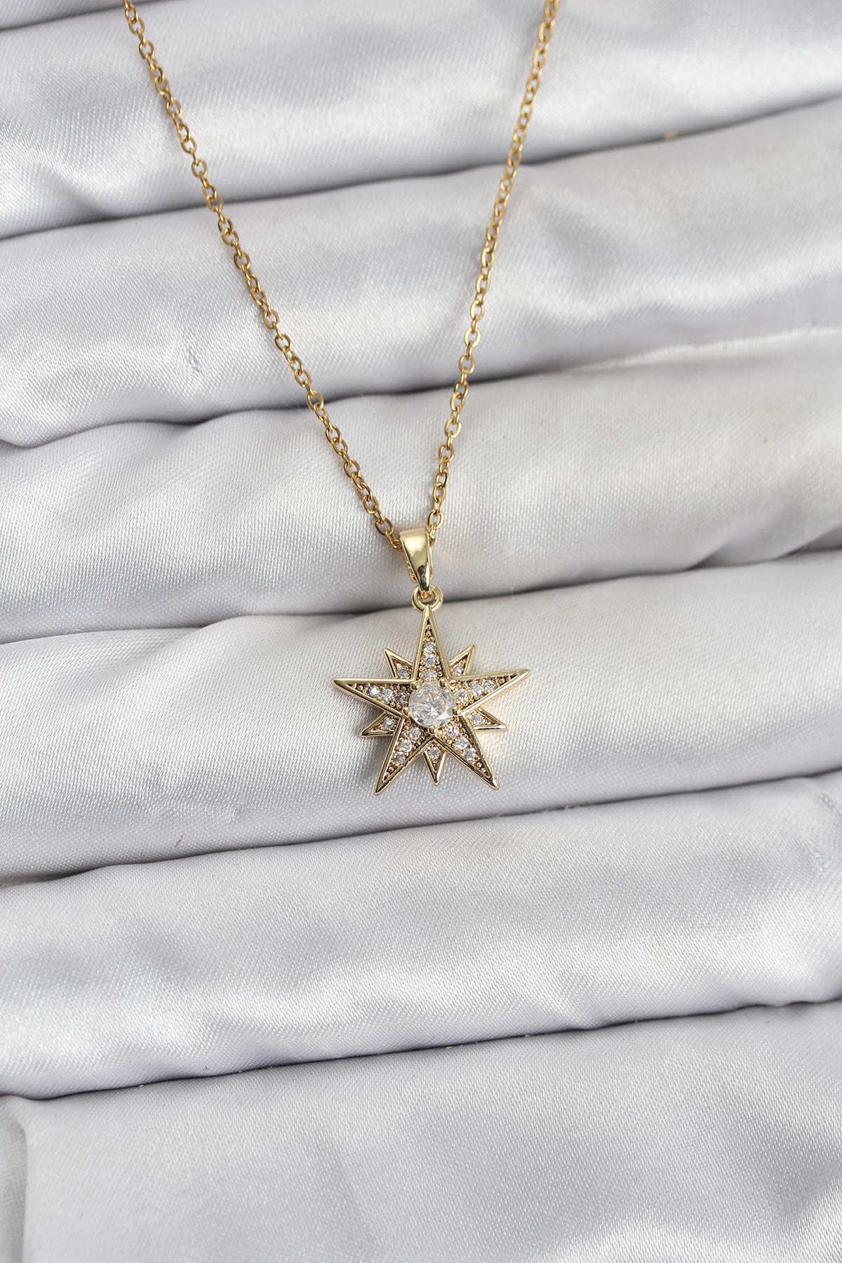 316L Çelik Zincir Gold Renk Yıldız Model Zirkon Taşlı Kadın Kolye - 267107