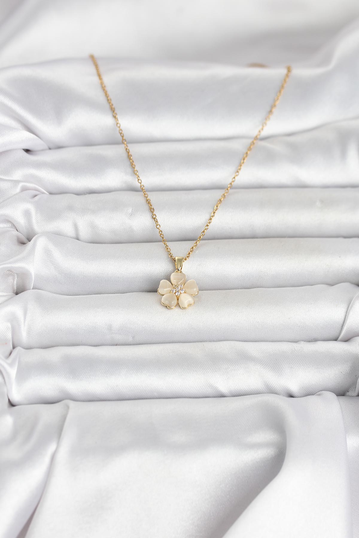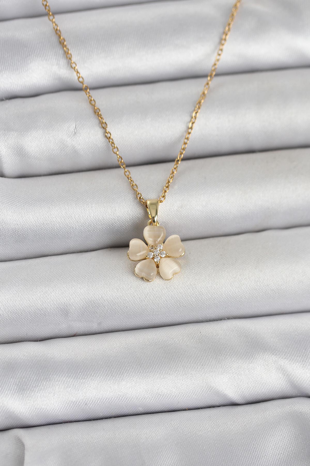316L Çelik Zincir Gold Renk Yonca Model Kadın Kolye - 268244