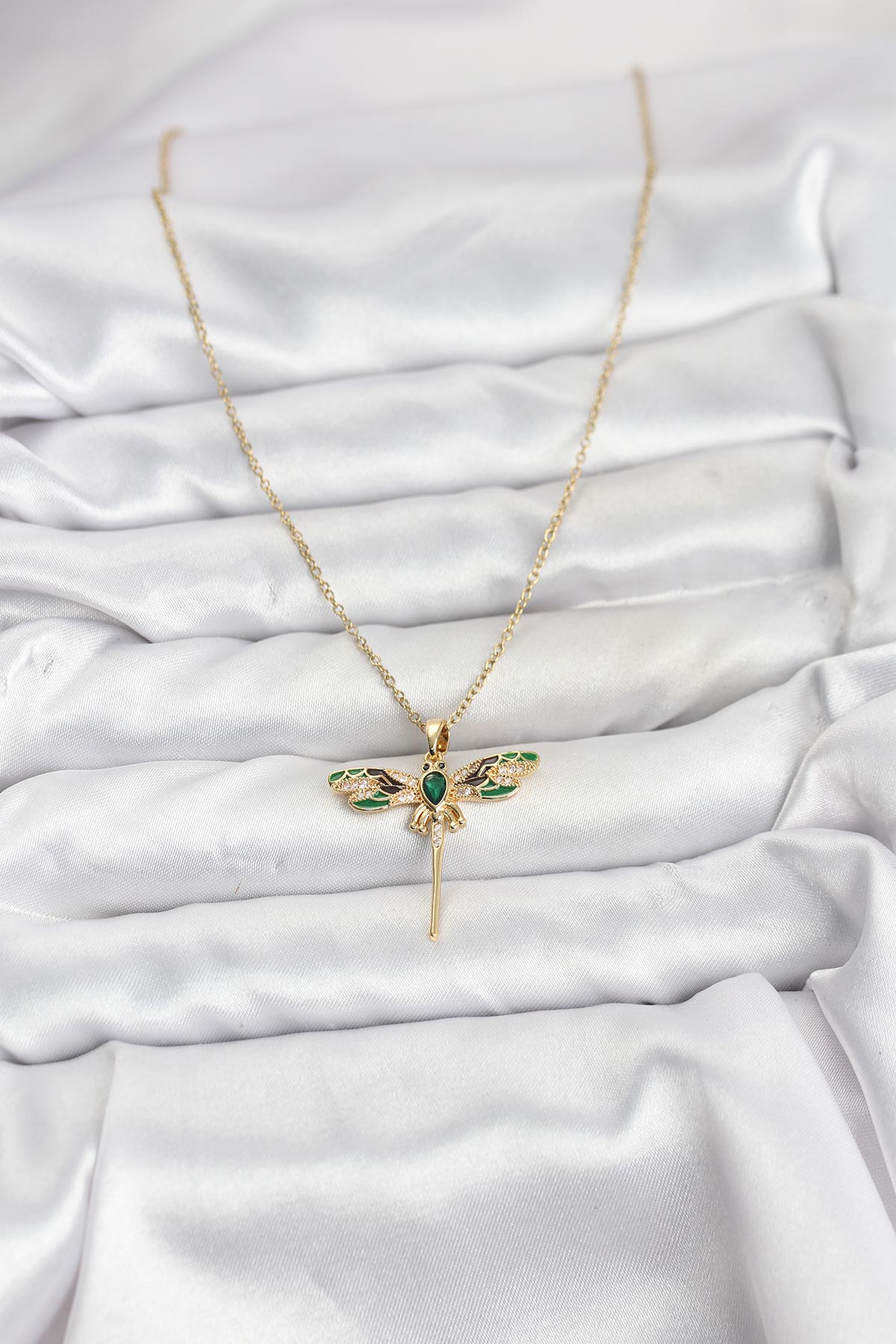 316L Çelik Zincir Gold Renk Yusufçuk Model Zirkon Taşlı Kadın Kolye - 267096
