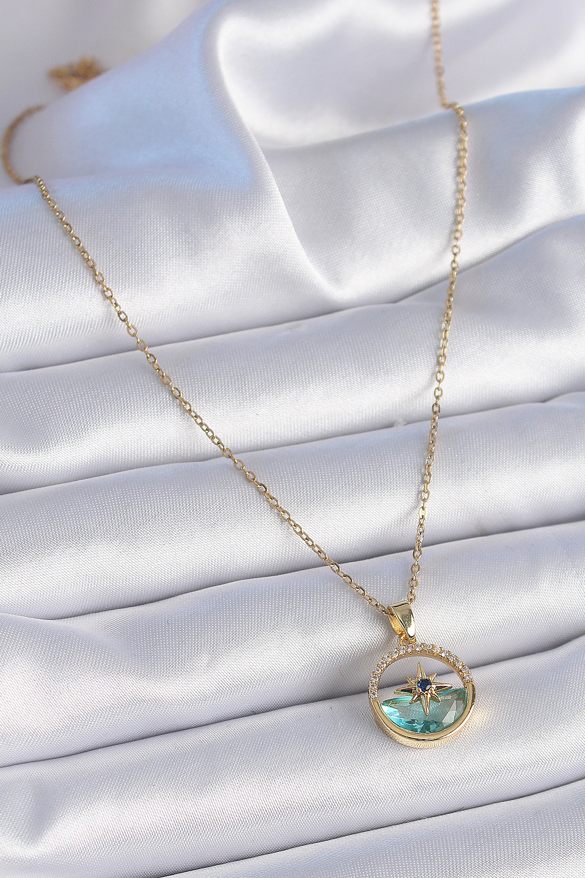 316L Çelik Zincir Gold Renk Zirkon Taşlı Deniz Görünüm Kutup Yıldız Model Kadın Kolye - 258253