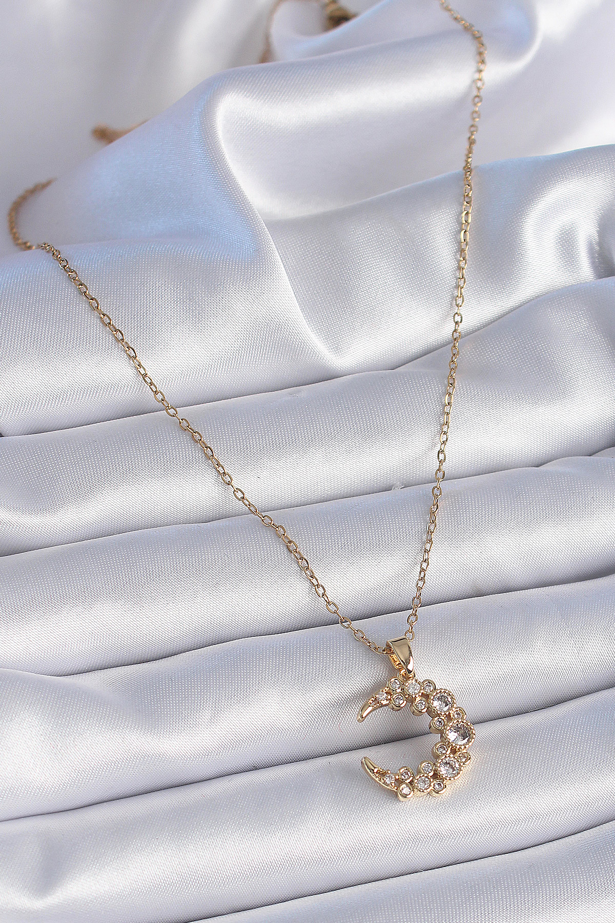 316L Çelik Zincir Gold Renk Zirkon Taşlı Hilal Model Kadın Kolye - 258249
