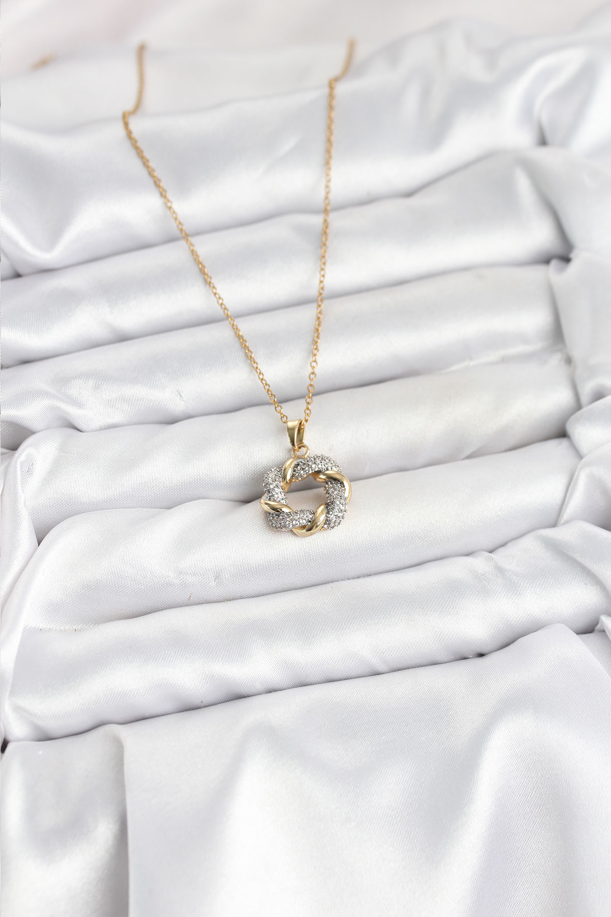 316L Çelik Zincir Gold Renk Zirkon Taşlı Sarmal Model Kadın Kolye - 266188