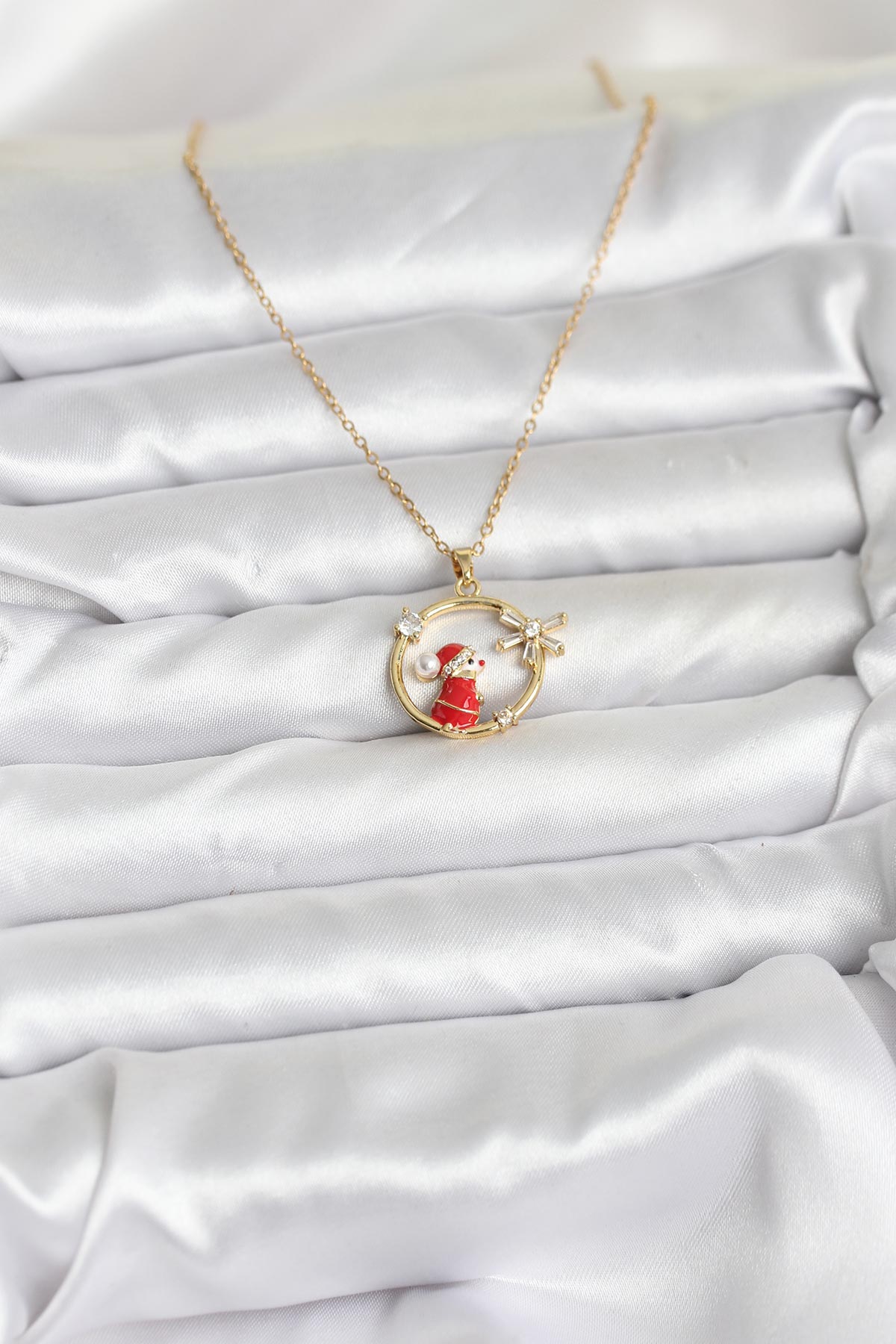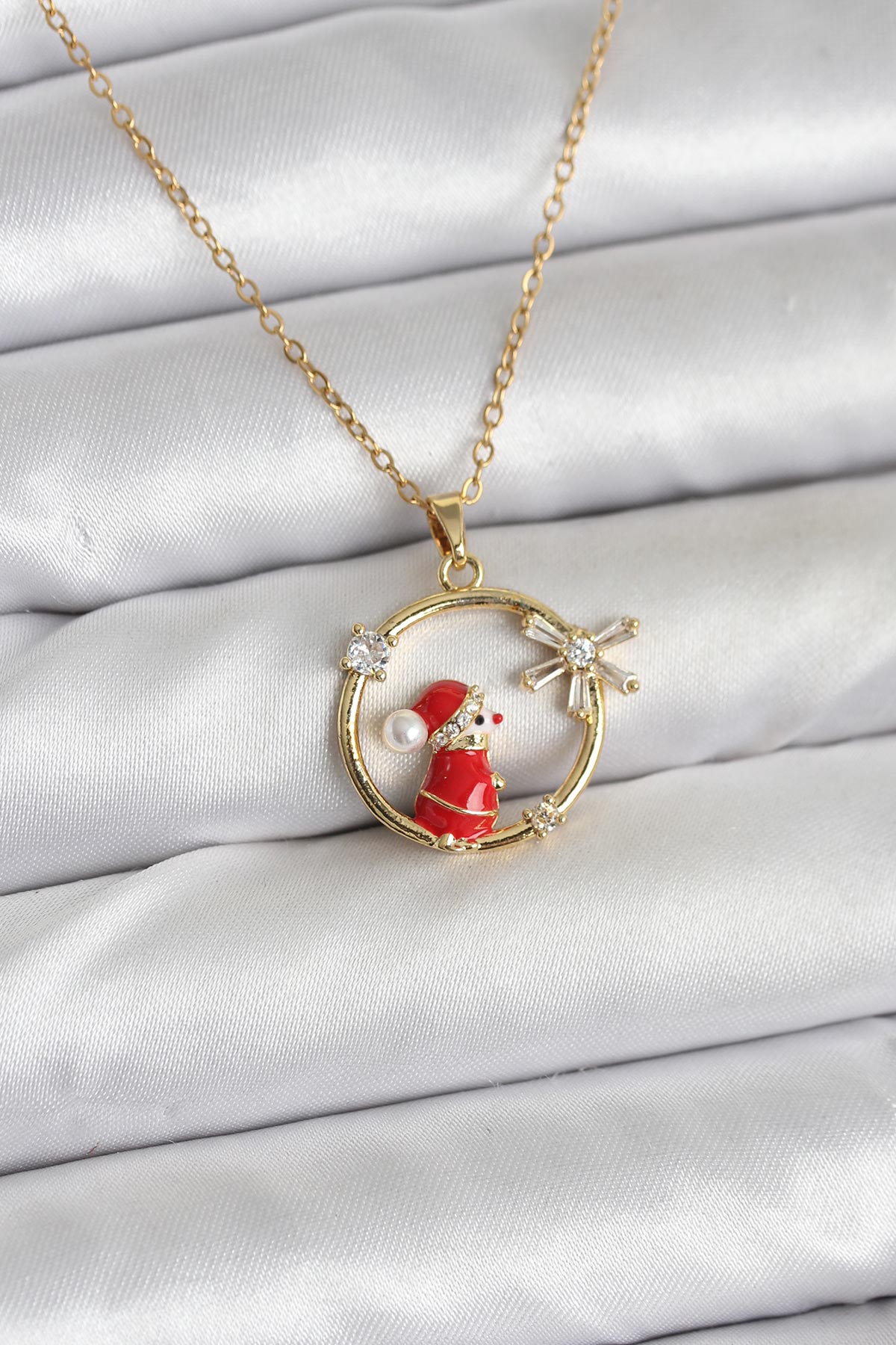 316L Çelik Zincir Gold Zirkon Taşlı Yılbaşı Tema Kadın Kolye - 266364