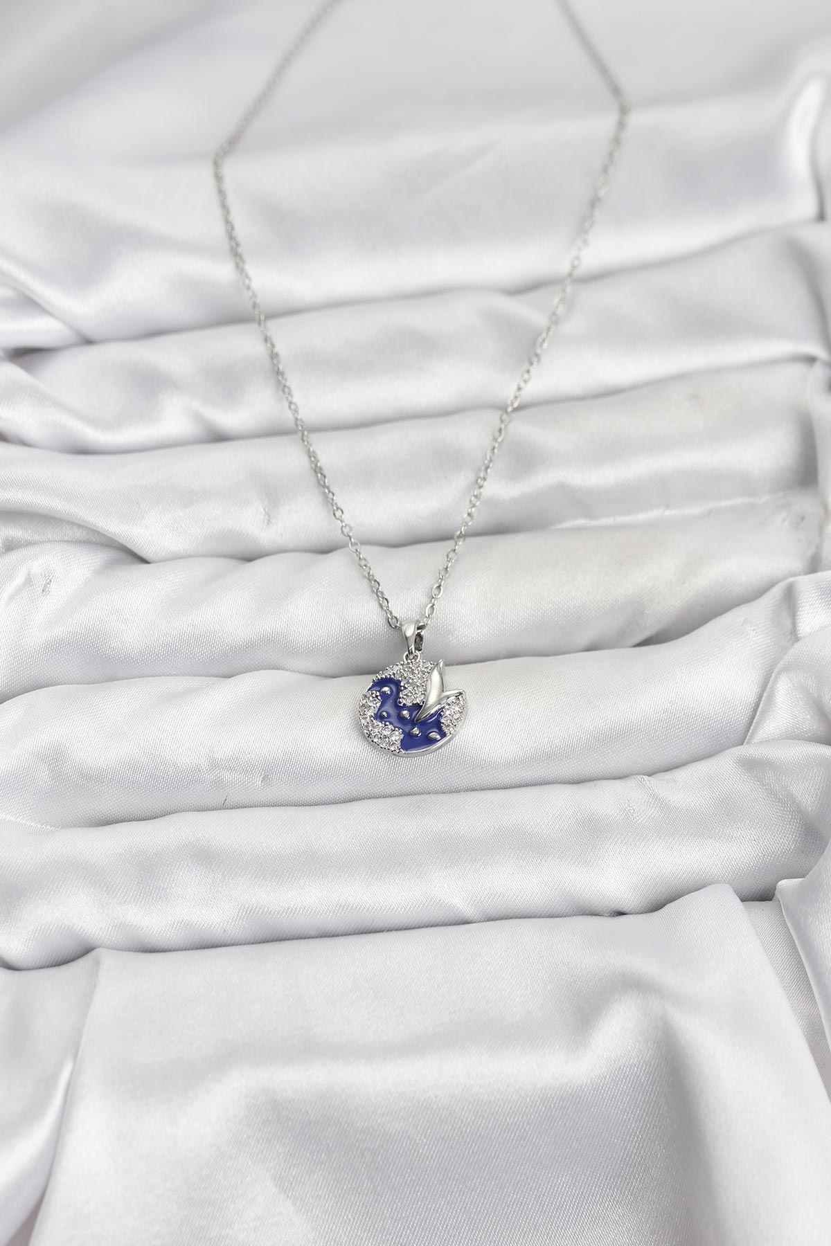 316L Çelik Zincir Gümüş Renk Gece Model Zirkon Taşlı Kadın Kolye - 267153