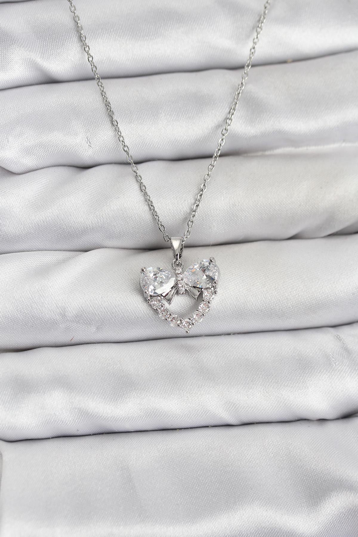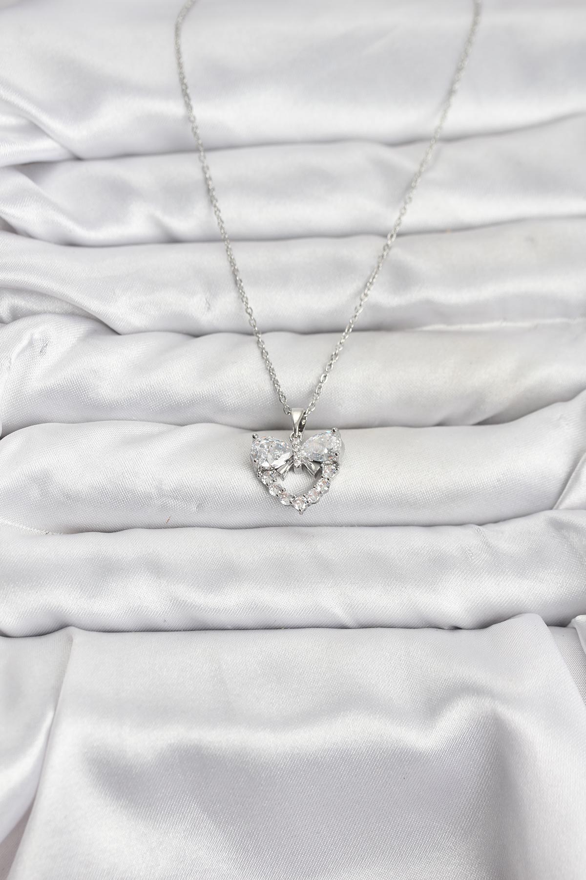 316L Çelik Zincir Gümüş Renk Kalp ve Fiyonk Model Zirkon Taşlı Kadın Kolye - 267112