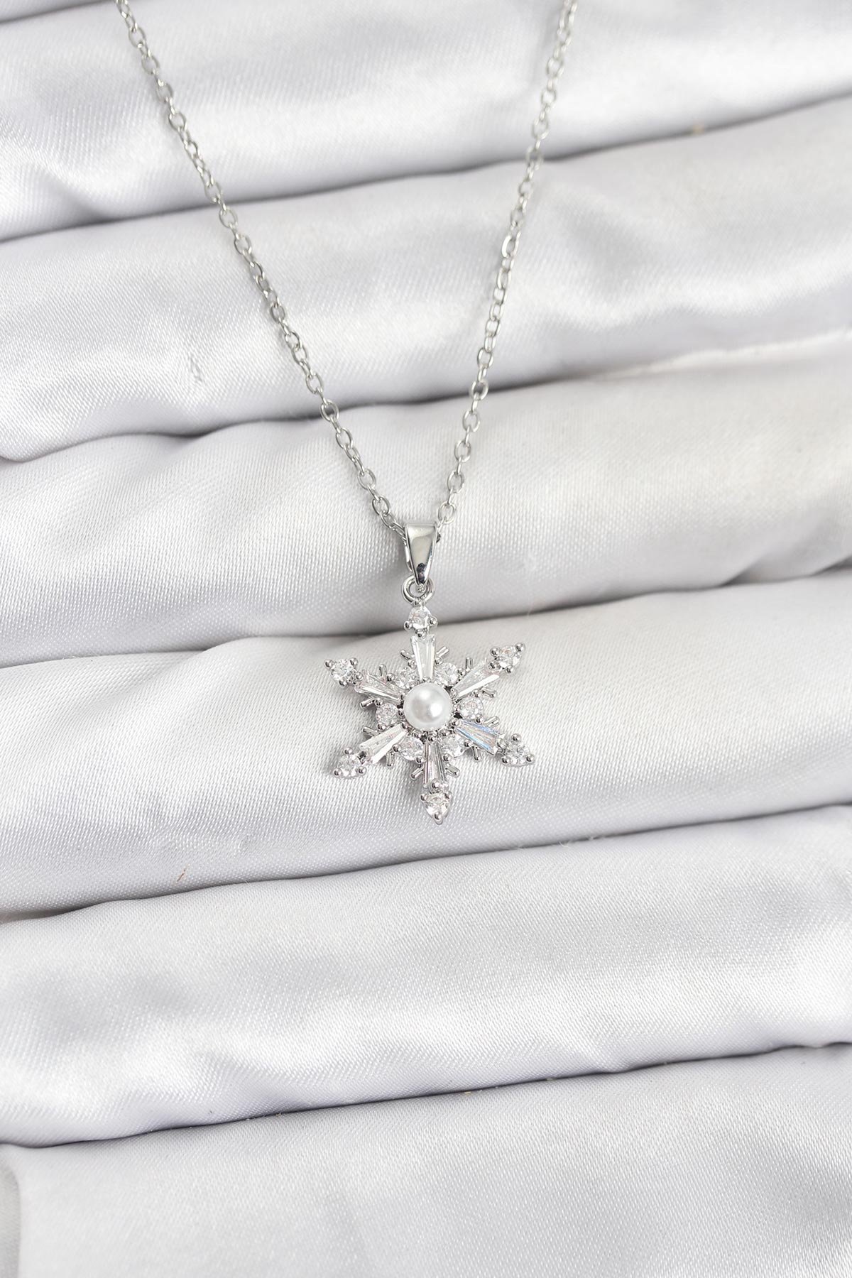 316L Çelik Zincir Gümüş Renk Kar Tanesi Model Zirkon Taşlı Kadın Kolye - 267127