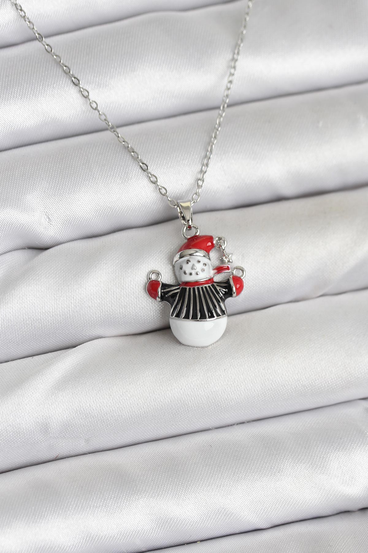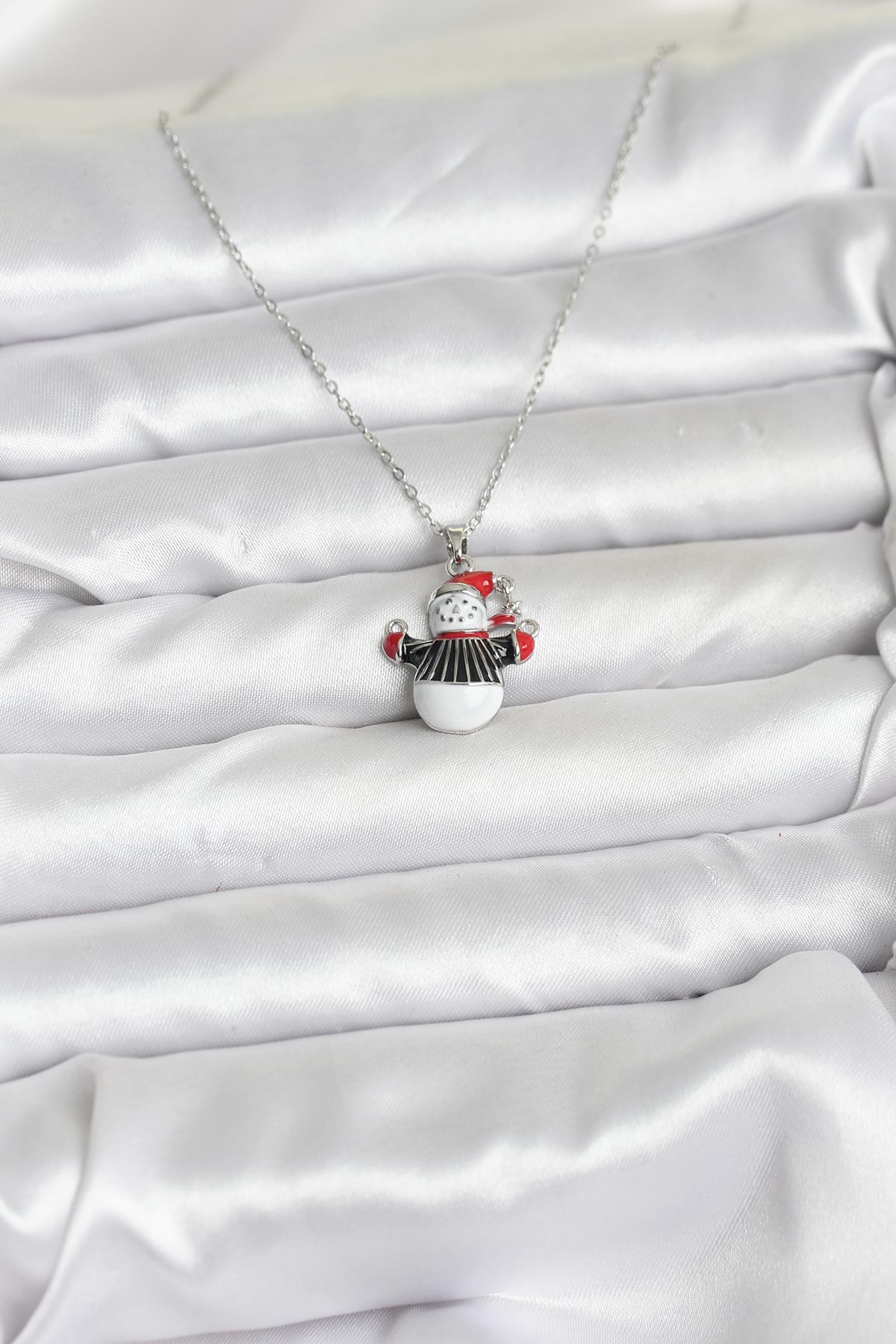 316L Çelik Zincir Gümüş Renk Kardan Adam Figürlü Yılbaşı Temalı Kadın Kolye - 266359