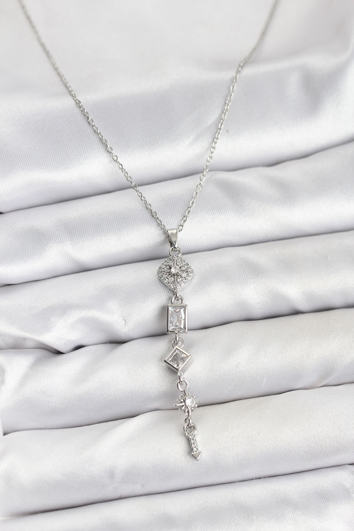 316L Çelik Zincir Gümüş Renk Kutup Yıldızı Enerji Model Kadın Y Kolye - 266298