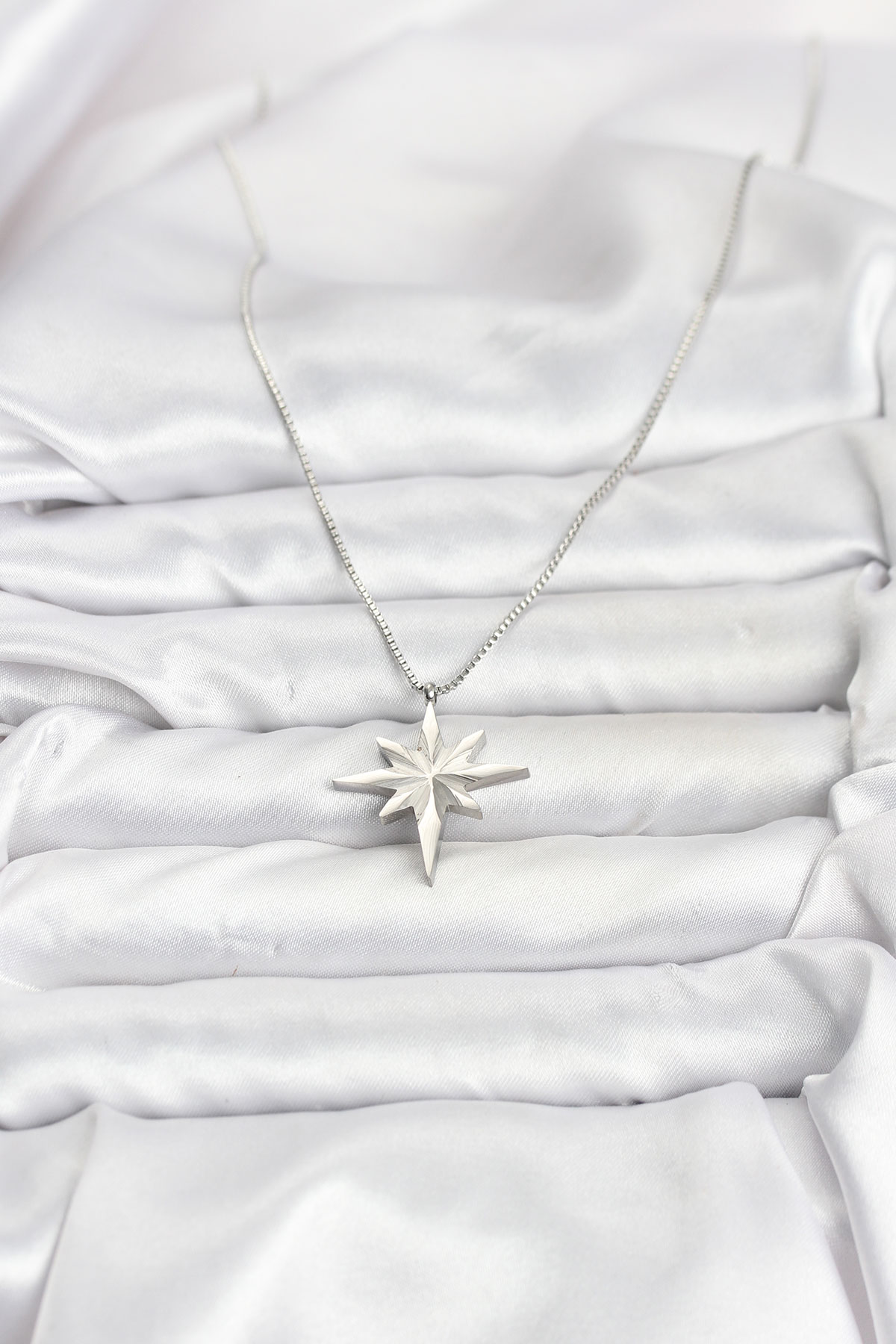 316L Çelik Zincir Gümüş Renk Kutup Yıldızı Model 60 cm Zincir Kadın Kolye - 266617