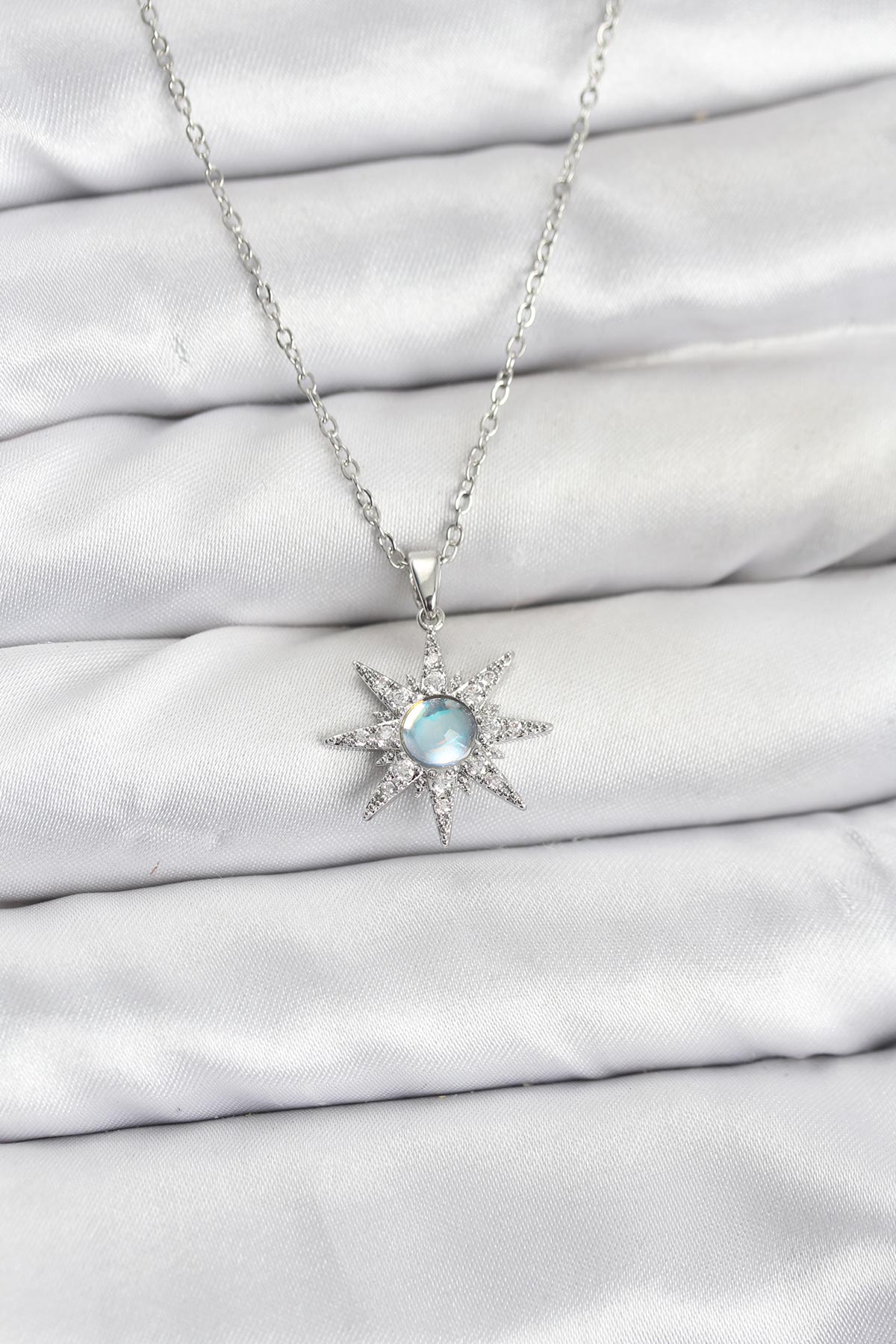 316L Çelik Zincir Gümüş Renk Kutup Yıldızı Model Zirkon Taşlı Kadın Kolye - 267123