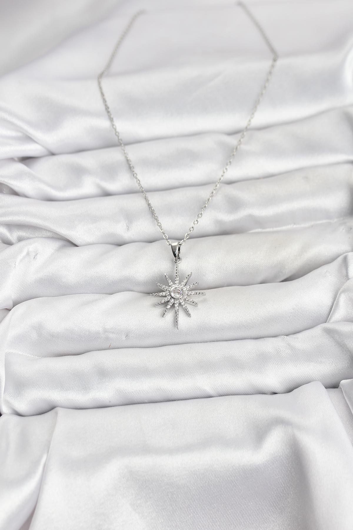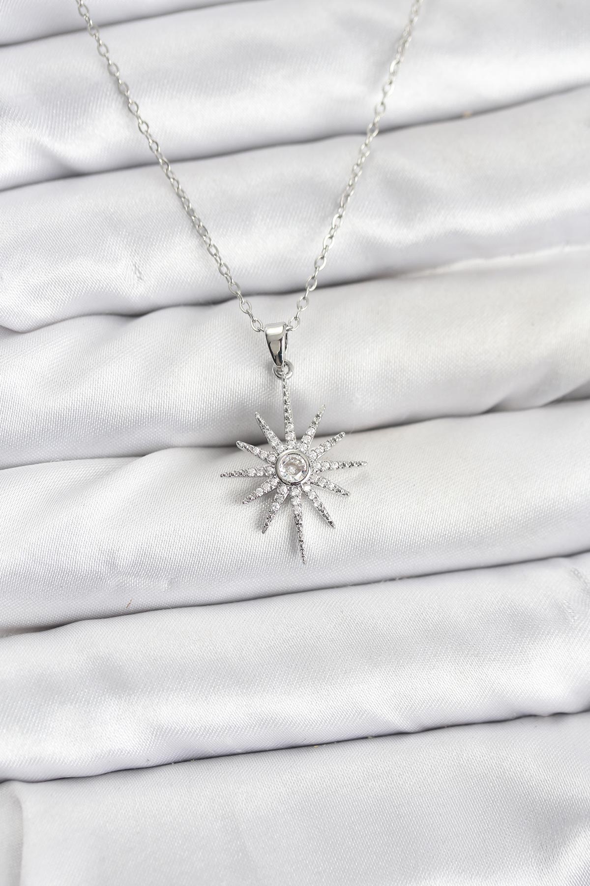 316L Çelik Zincir Gümüş Renk Kutup Yıldızı Model Zirkon Taşlı Kadın Kolye - 267139