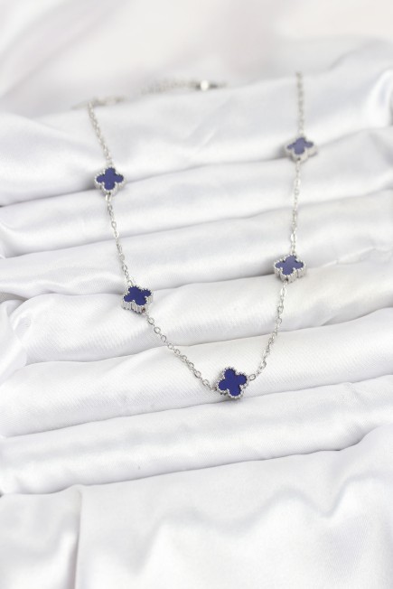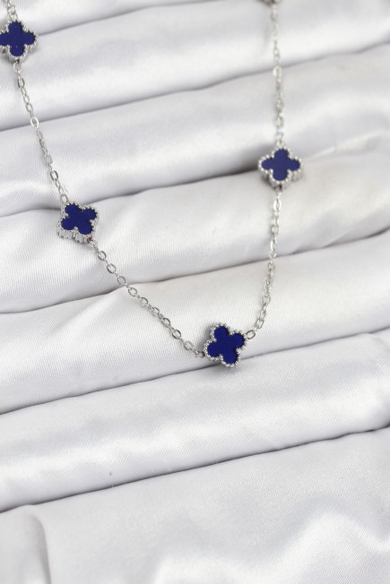 316L Çelik Zincir Gümüş Renk Lacivert Baby Boy Yonca Kadın Kolye - 265681