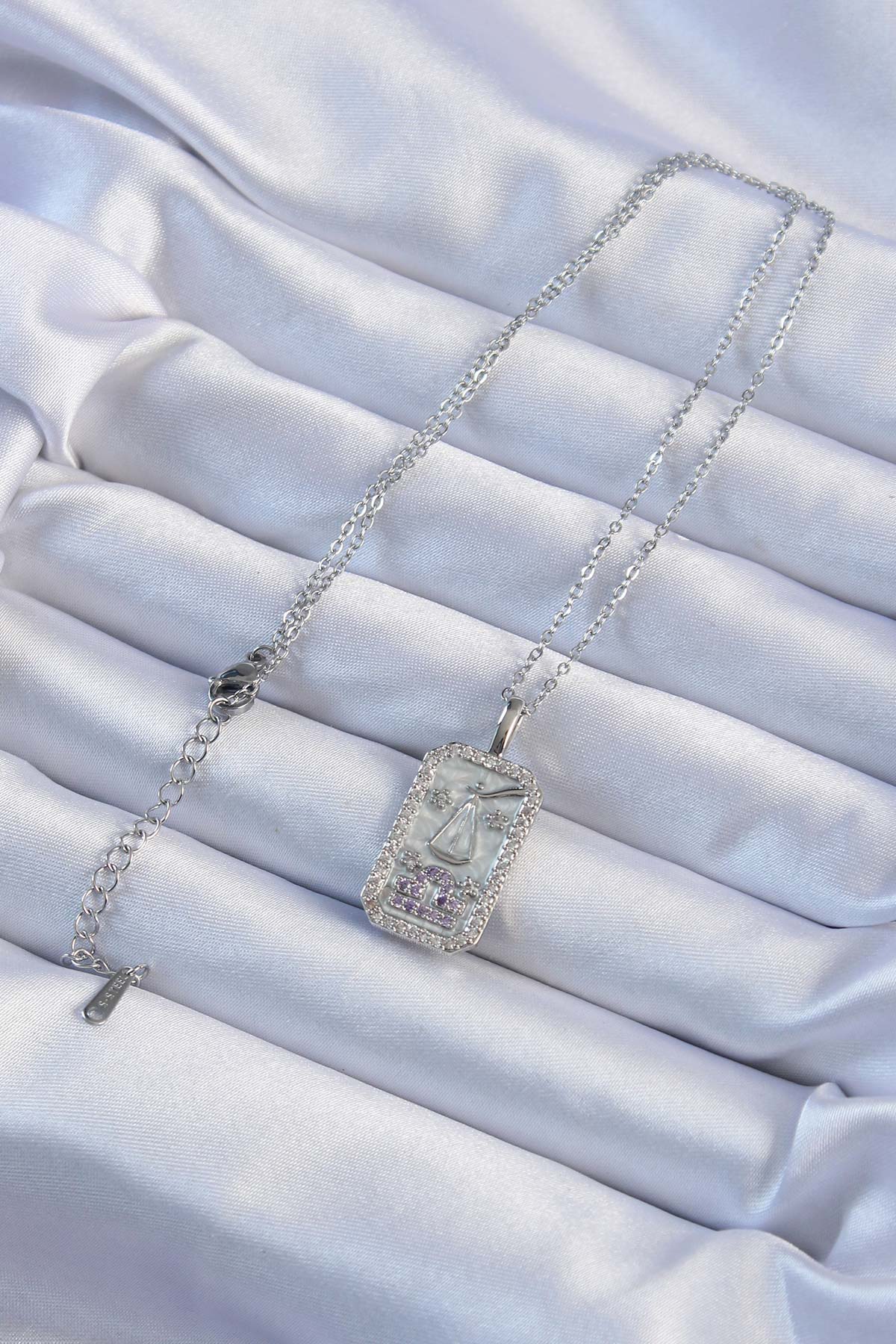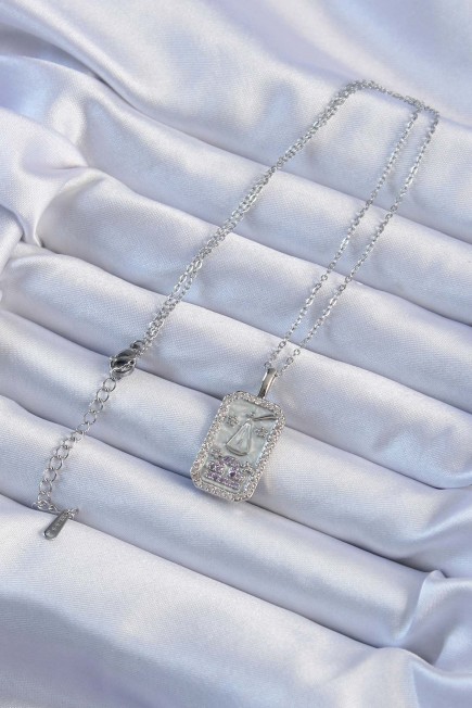 316L Çelik Zincir Gümüş Renk Lila Zirkon Taşlı Tarot Kolye - 257420