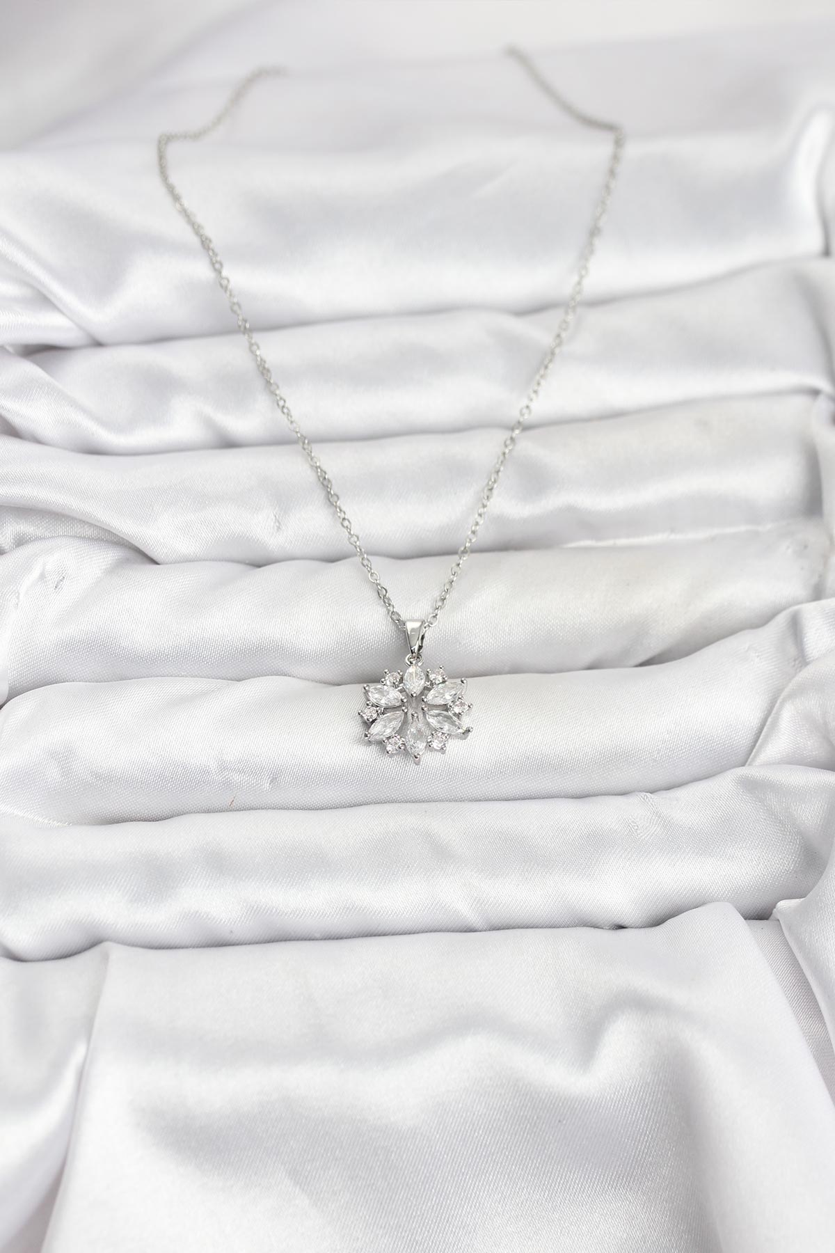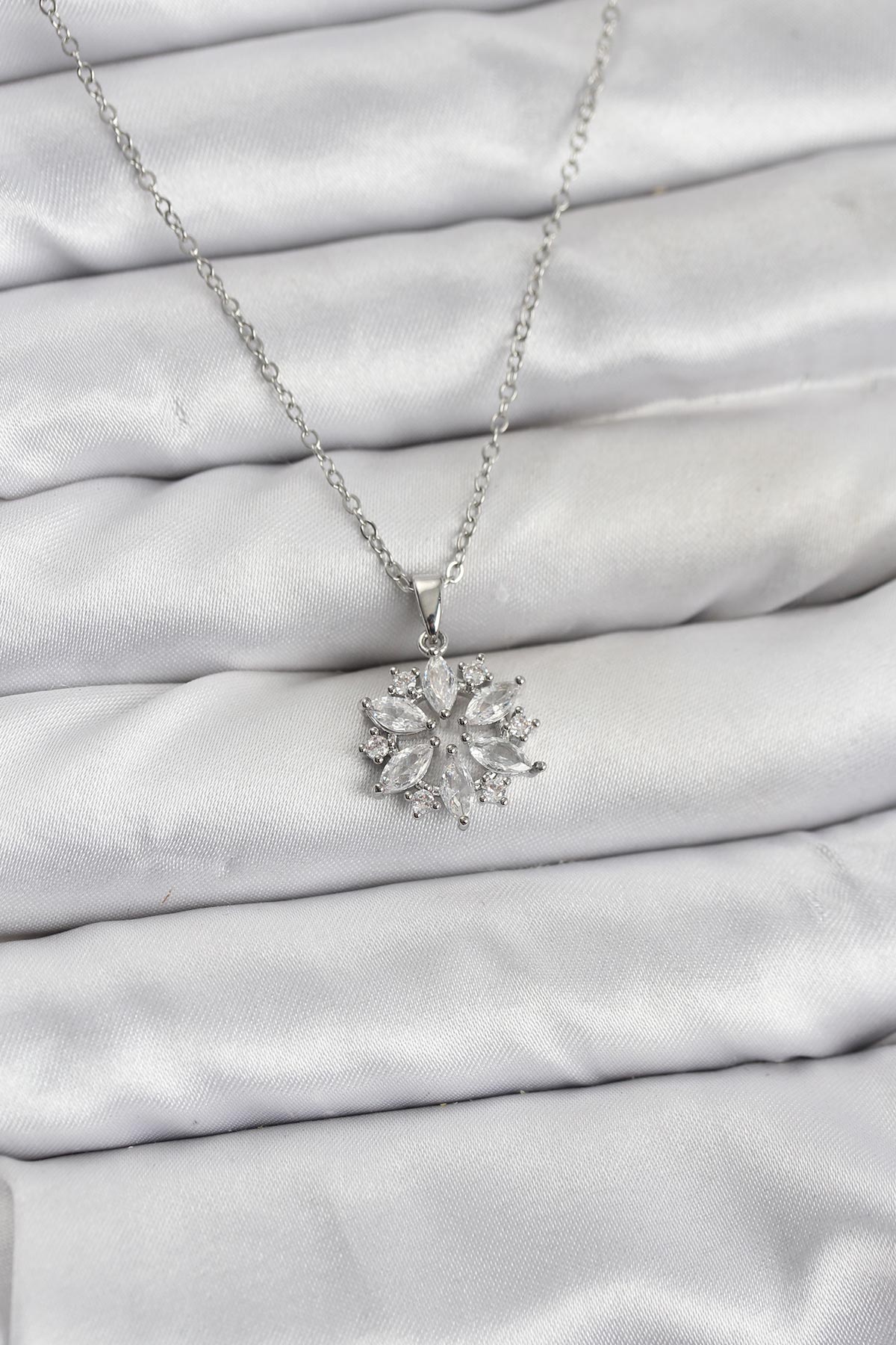 316L Çelik Zincir Gümüş Renk Lotus Model Zirkon Taşlı Kadın Kolye - 267097