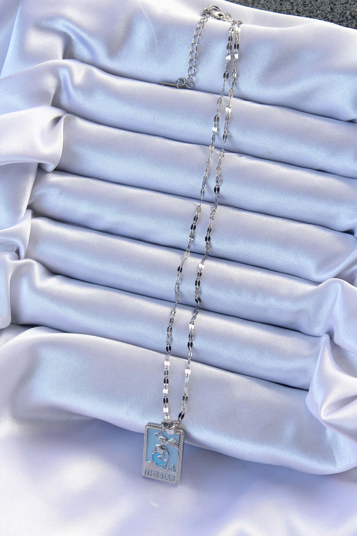 316L Çelik Zincir Gümüş Renk Mavi Mineli Tarot Kolye - 257346